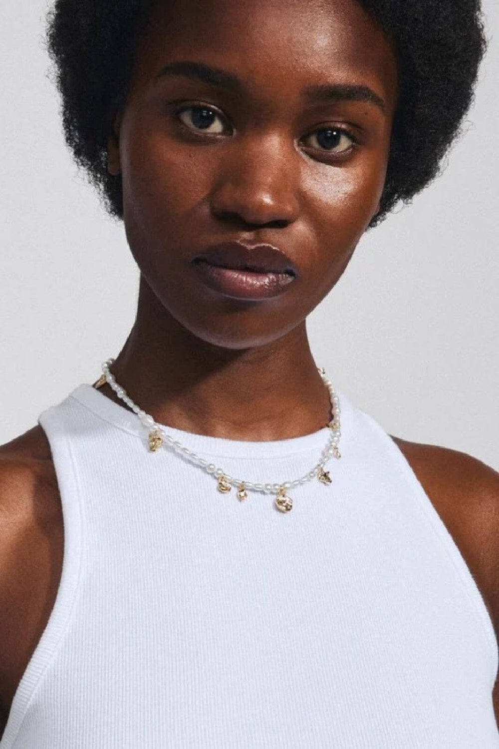 Les colliers de perles se portent de différentes façons. Un rang simple convient au bureau, tandis qu'une superposition avec une chaîne fine crée un style plus recherché. La combinaison de différentes longueurs structure la silhouette tout en gardant une allure équilibrée.
