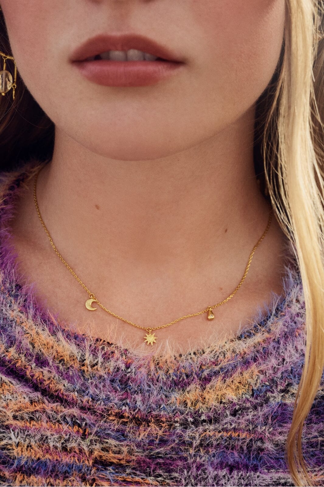 Les colliers dorés se distinguent par leur brillance mesurée. Cette finition s'harmonise avec différentes couleurs de vêtements. Ces pièces peuvent être portées seules ou associées à d'autres colliers, selon l'effet souhaité.