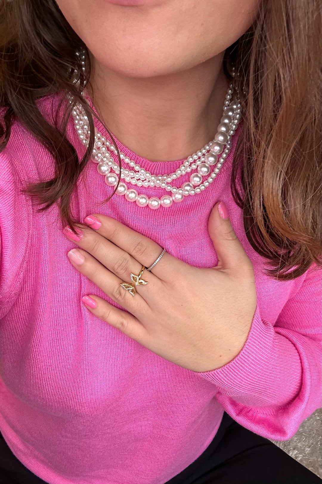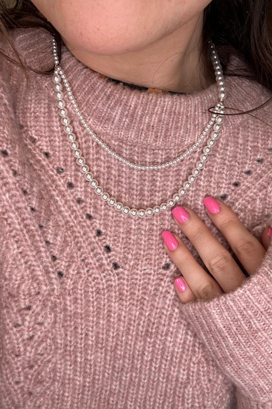 Les colliers de perles se portent de différentes façons. Un rang simple convient au bureau, tandis qu'une superposition avec une chaîne fine crée un style plus recherché. La combinaison de différentes longueurs structure la silhouette tout en gardant une allure équilibrée.