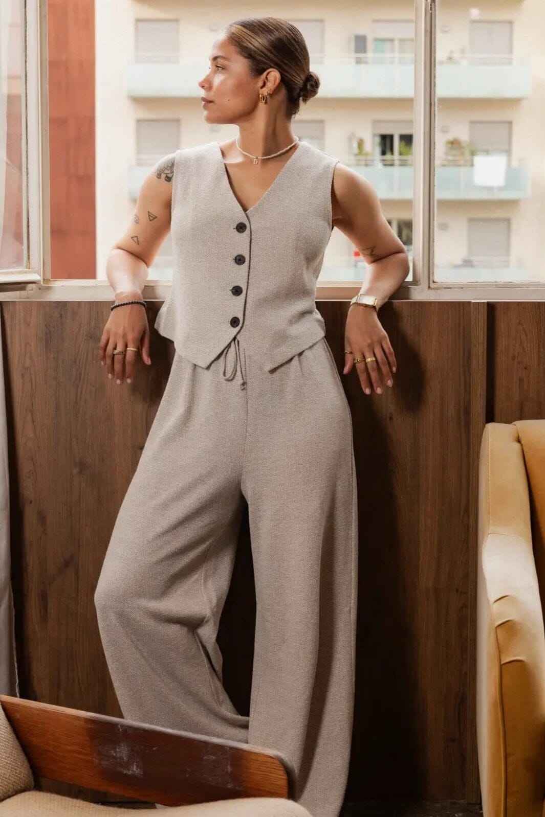 Le gilet femme apporte une touche d'élégance naturelle à chaque tenue. Cette pièce versatile s'adapte parfaitement au bureau comme aux moments de détente, grâce à sa coupe fluide qui facilite les superpositions en toute saison.