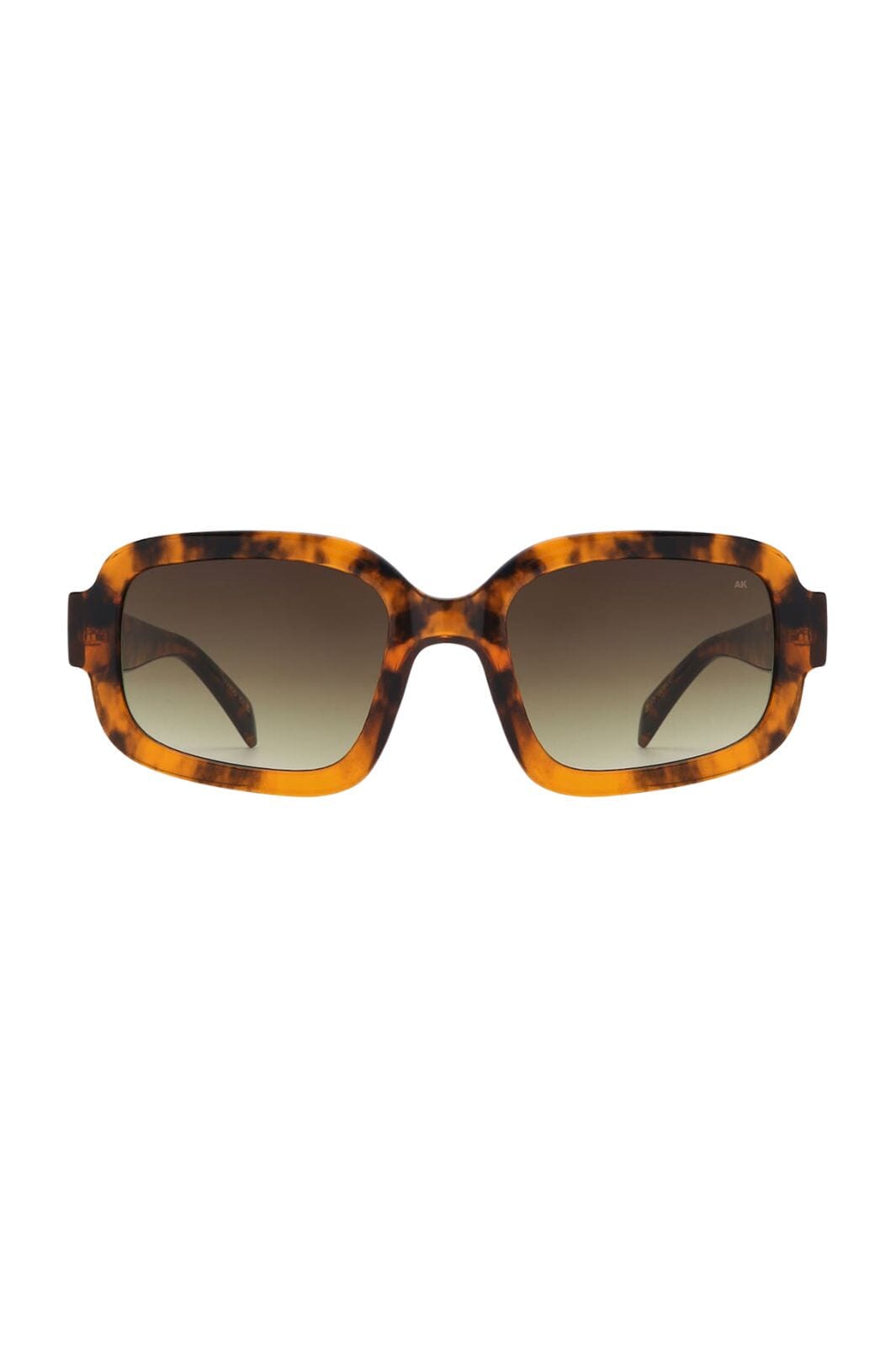 Lunettes de soleil de A. Kjærbede avec monture carrée de couleur havane brun. La monture présente un motif écaille de tortue et des verres dégradés teintés avec une monture robuste.