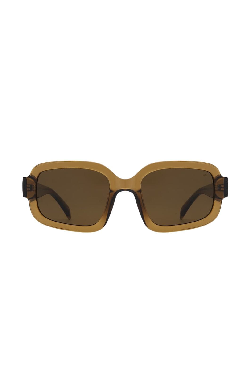 Lunettes de soleil surdimensionnées de A. Kjærbede avec une monture épaisse en brun transparent. Les lunettes ont une forme rectangulaire avec des courbes douces et des verres teintés qui offrent une bonne protection contre le soleil.