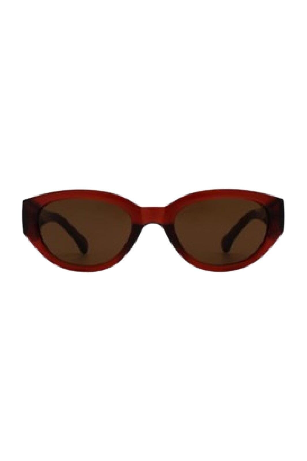 Lunettes de soleil brunes de A. Kjærbede avec forme œil de chat. Les lunettes sont fabriquées en polycarbonate avec une surface brillante et ont des branches malléables avec des noyaux en métal.