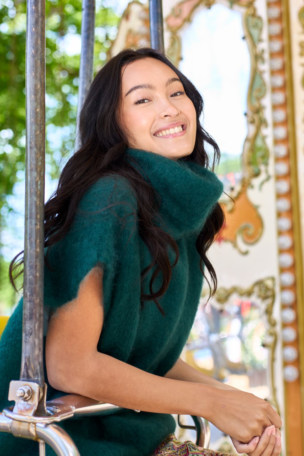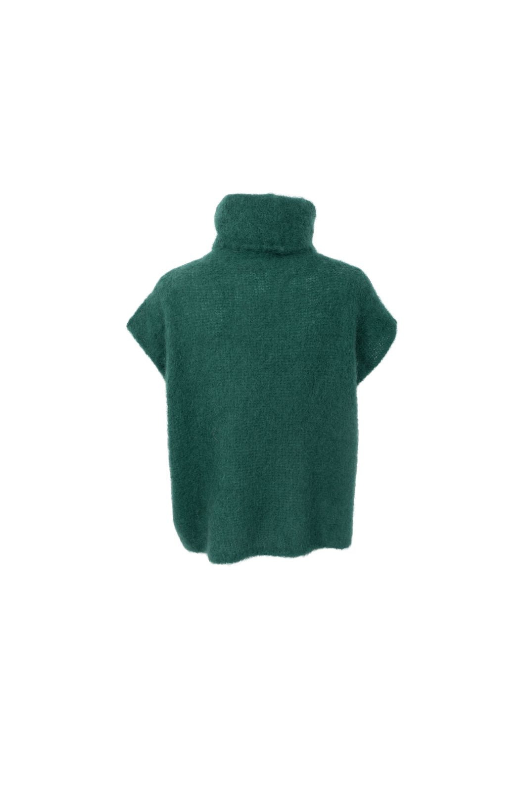 Gilet col roulé vert foncé de Black Colour avec col haut et manches courtes. Le gilet doux a une coupe oversize et est fabriqué en mélange de mohair avec une surface texturée.