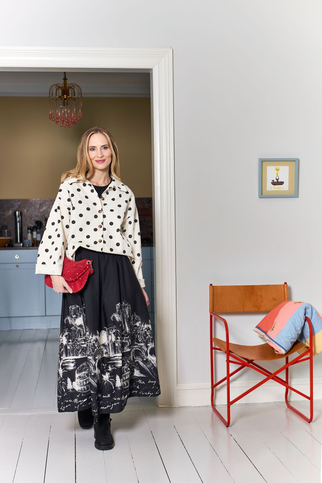 Veste-chemise de Black Colour, confectionnée en coton blanc à pois noirs. La veste possède un col de chemise classique et une fermeture boutonnée sur le devant.