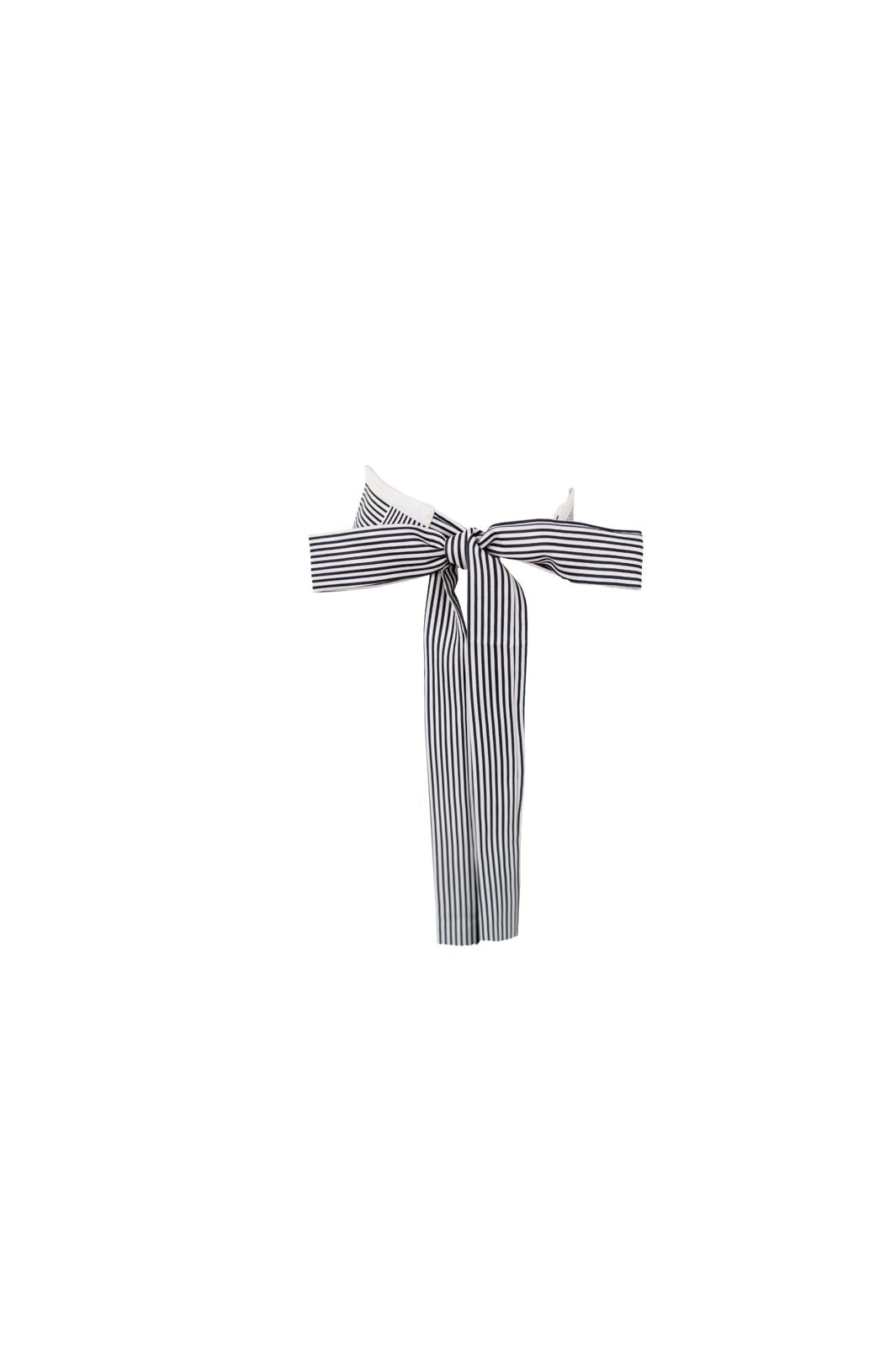 Foulard triangulaire de Black Colour en crème avec un motif géométrique de rayures et de carrés noirs et blancs.