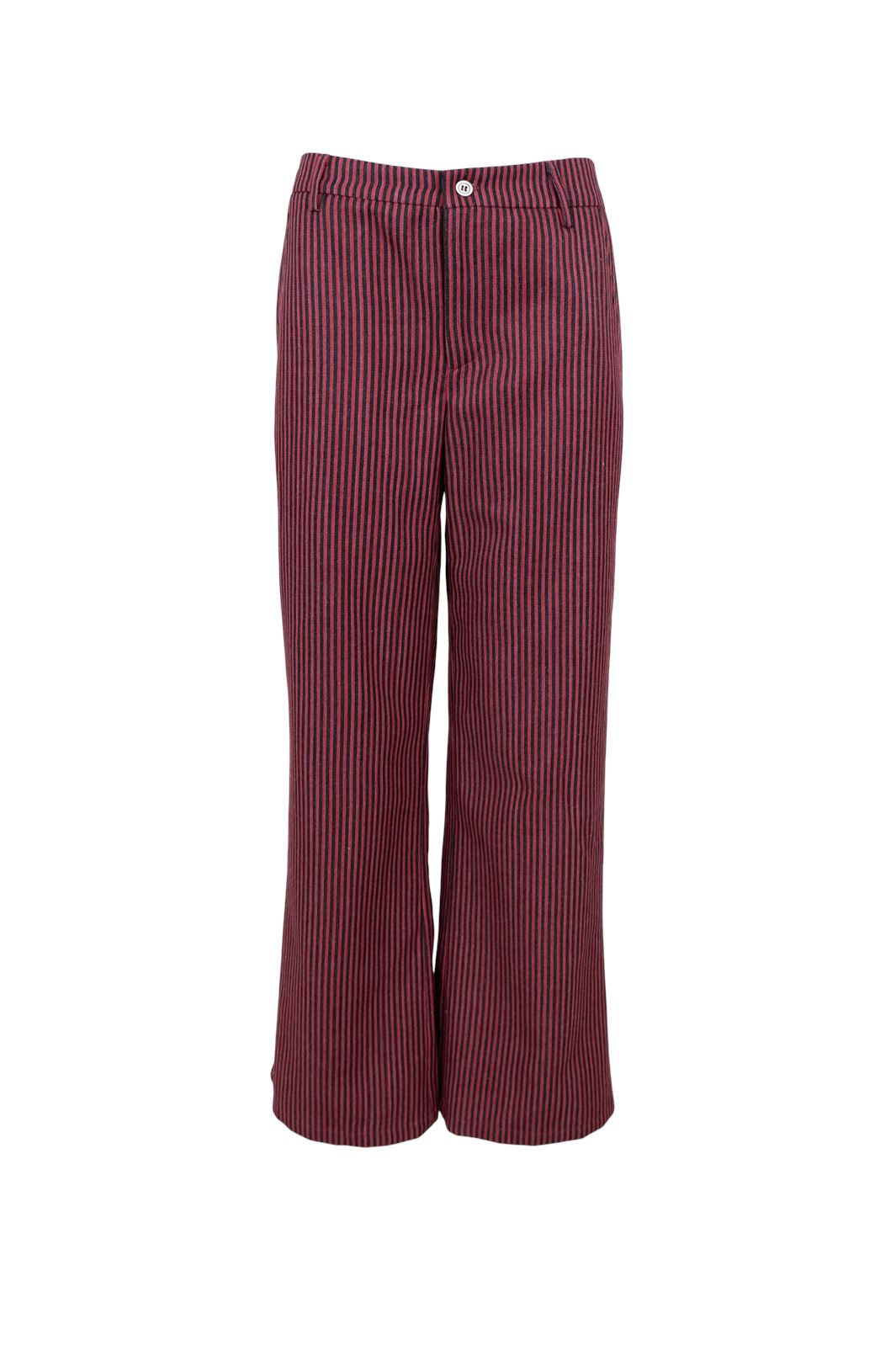 Pantalons de Black Colour dans une couleur prune profonde avec des rayures verticales. Les pantalons ont une longueur cheville et une coupe régulière avec une taille normale. La fermeture se compose d'une fermeture éclair et de boutons.