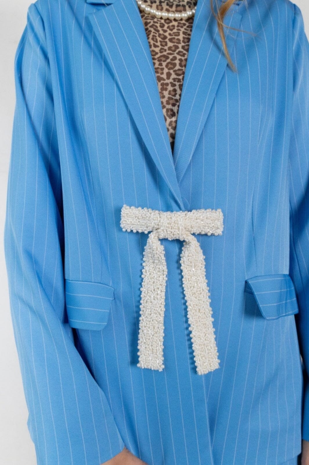 Barrette blanche de Black Colour avec une forme de nœud et une surface ornée de perles. La barrette a une forme classique avec un joli look orné de perles.