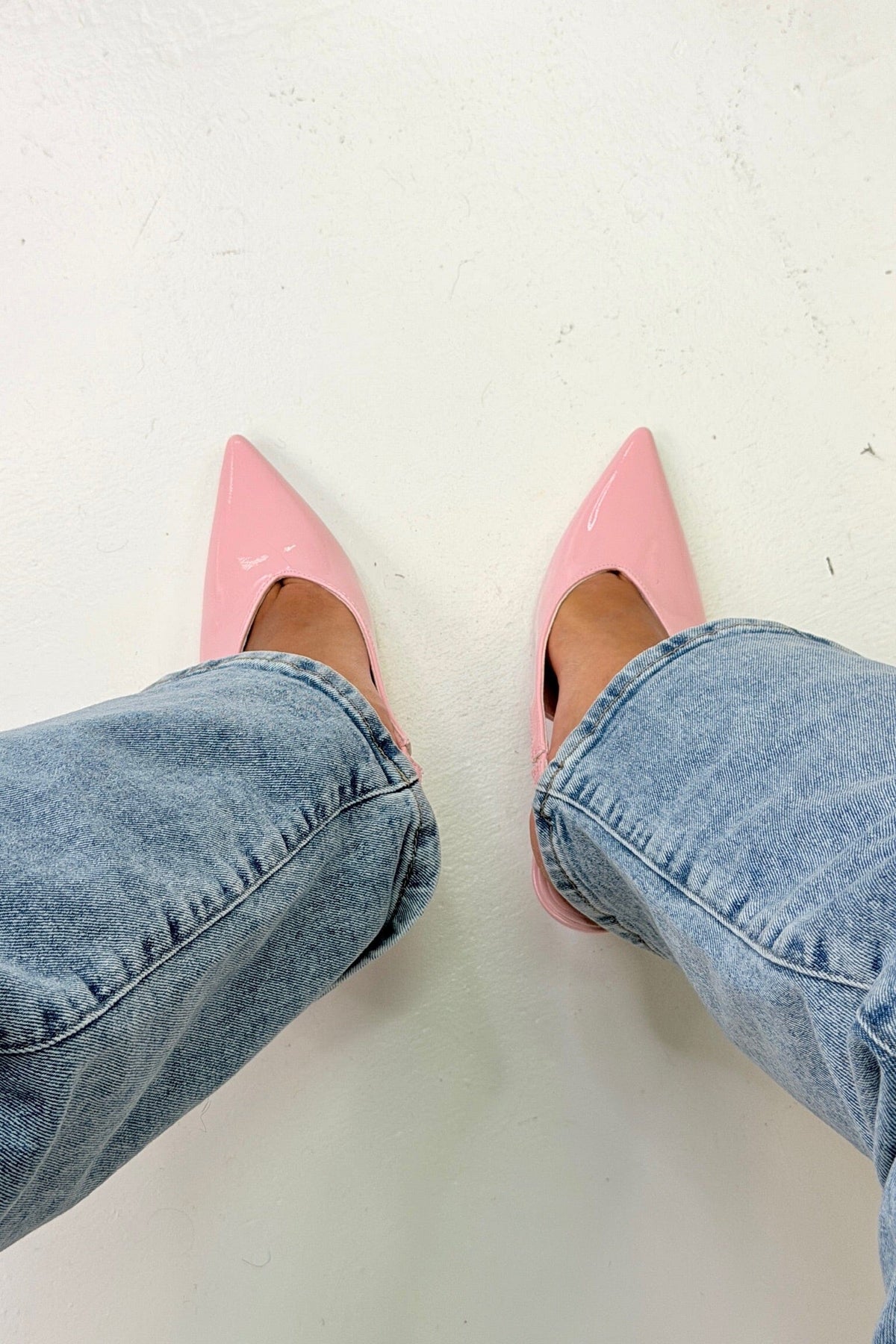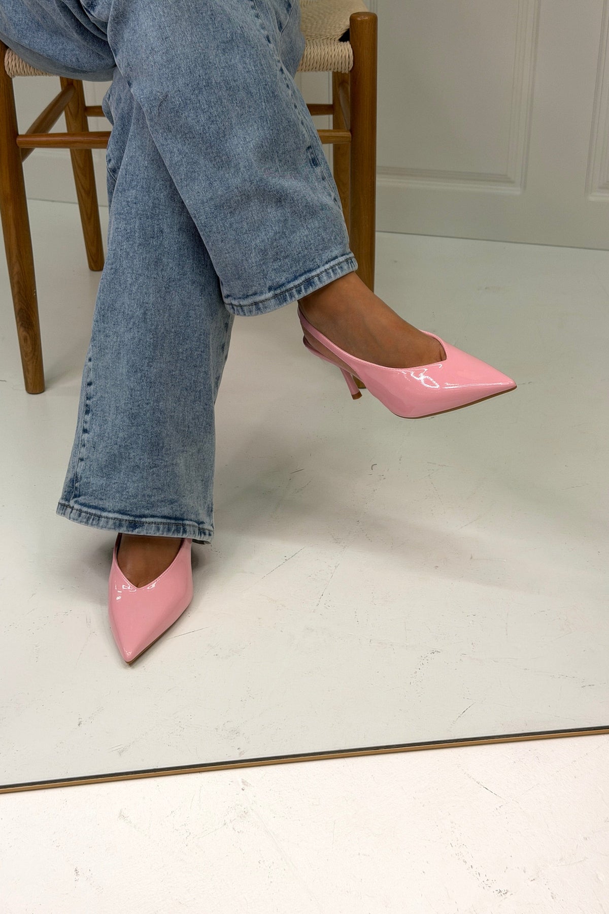 Escarpin rose de Bloom avec bride slingback. La chaussure possède un bout pointu et un fin talon aiguille en matière synthétique.