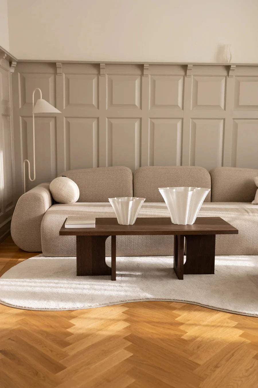 Vase transparente de Bloom Objects avec une forme ondulée, inspirée des coraux. Fabriquée avec une technologie d’impression 3D en PLA biosourcé et produite localement au Danemark.
