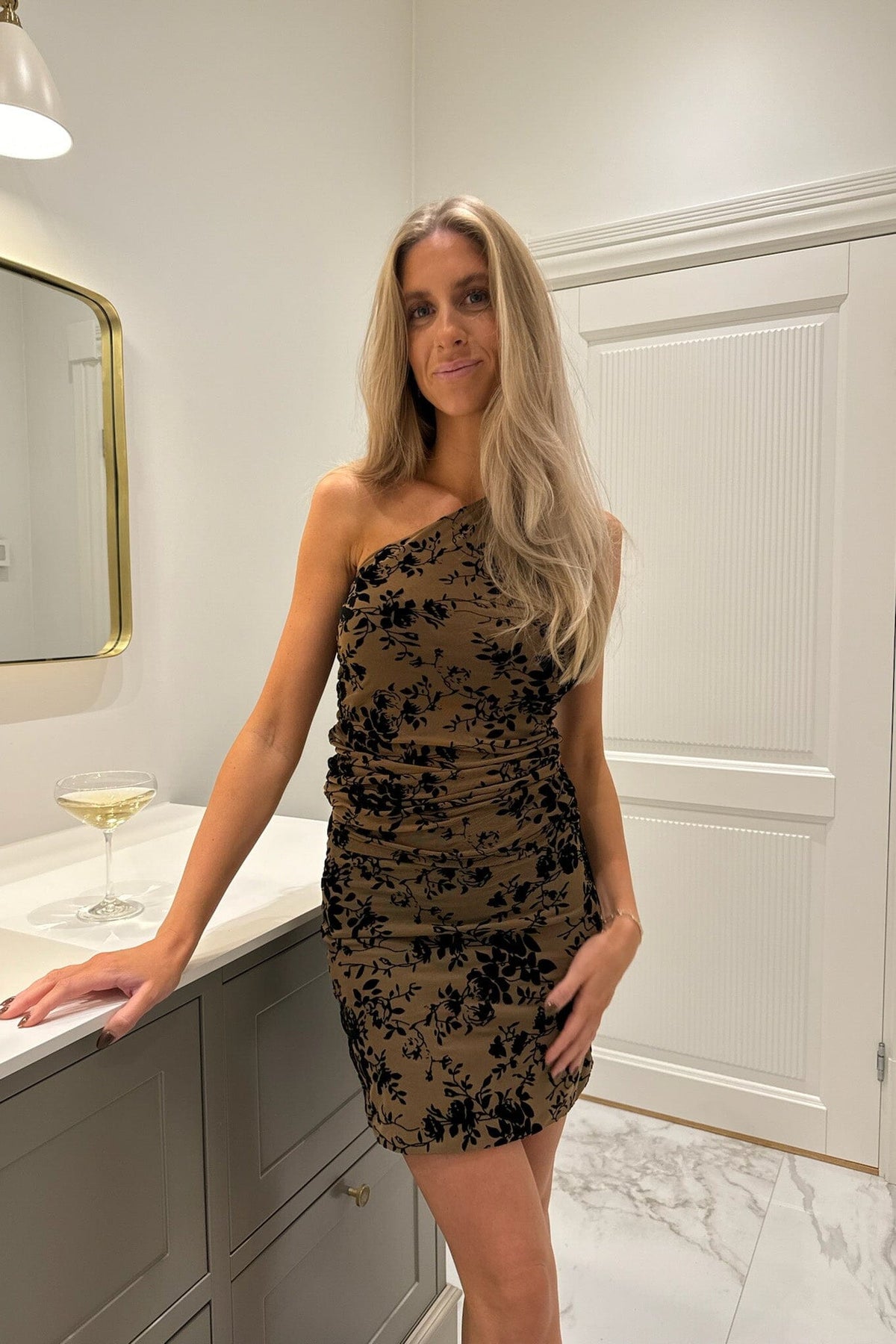 (Beige Black Flower Print)