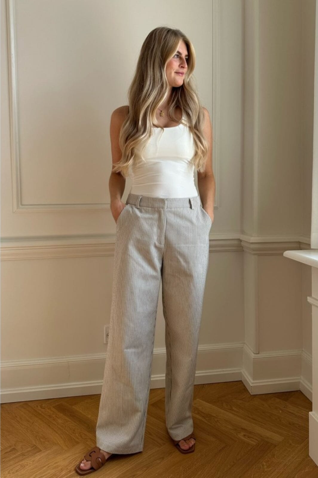 BYIC Nanna Pants Dark Beige Woven Stripe
