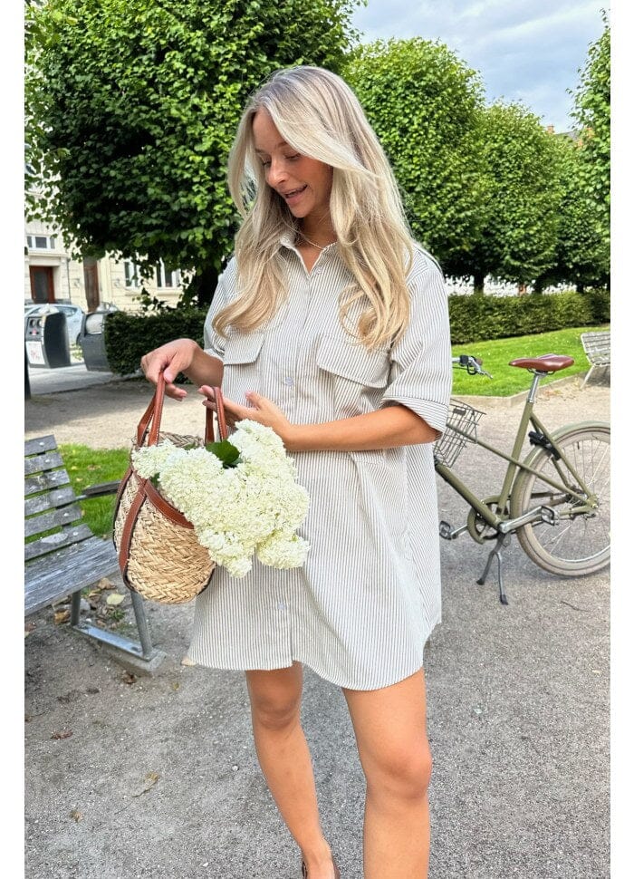 BYIC Selda Shirt Dress Couleur: Dark Beige Woven Stripe