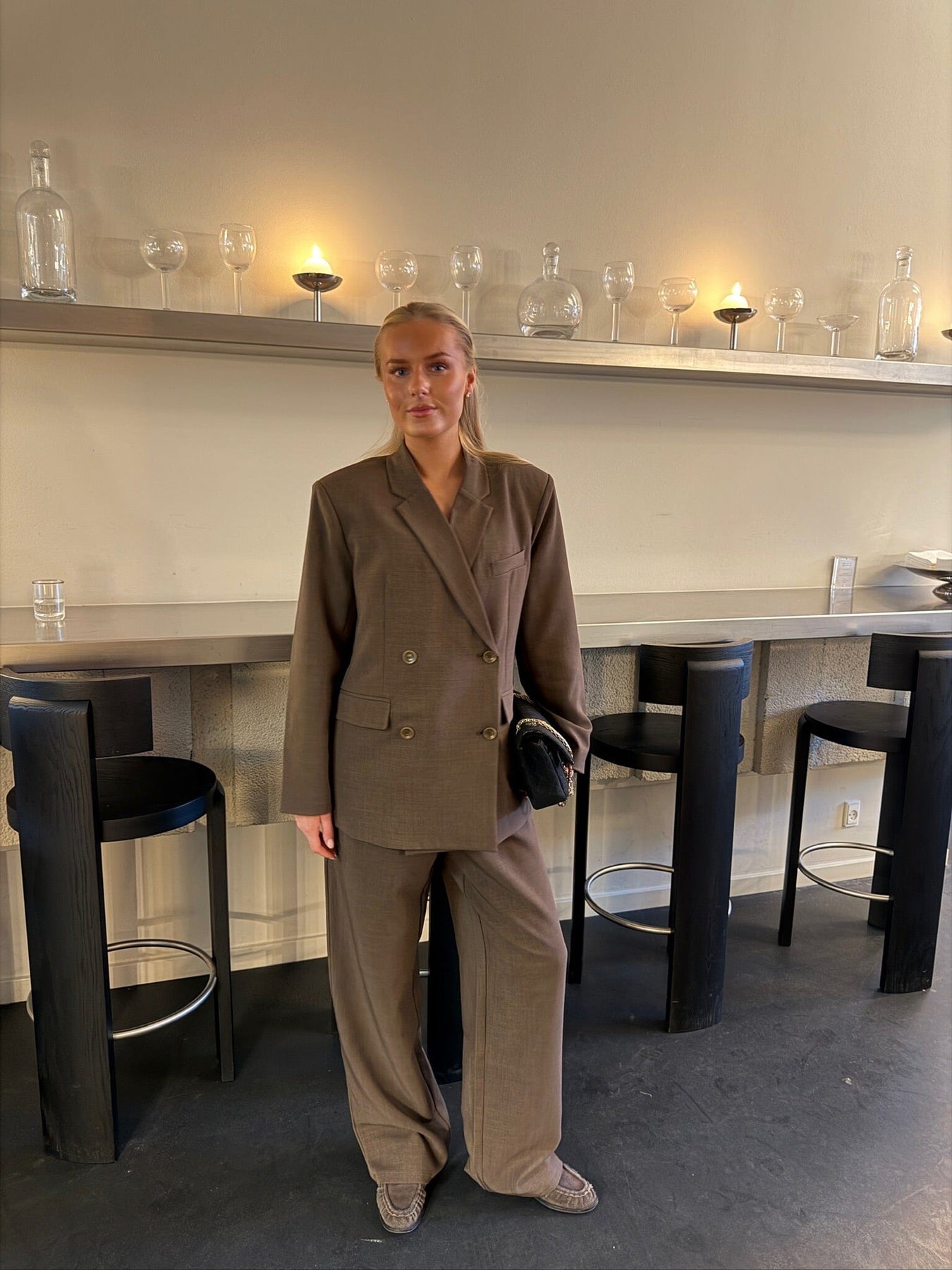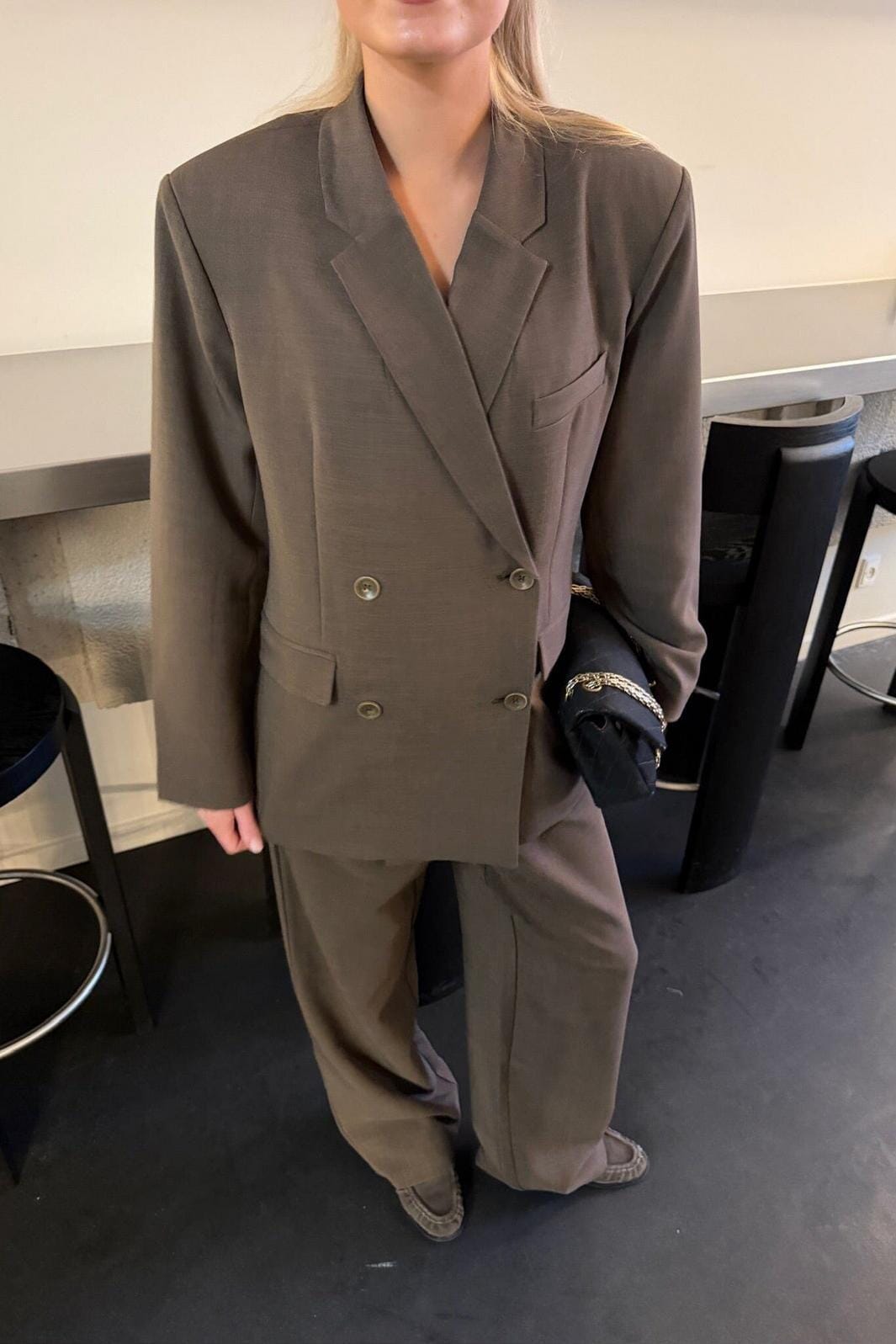 Blazer croisé de BYIC en marron foncé. Le blazer présente une coupe légèrement oversize et un design classique croisé avec col de chemise.