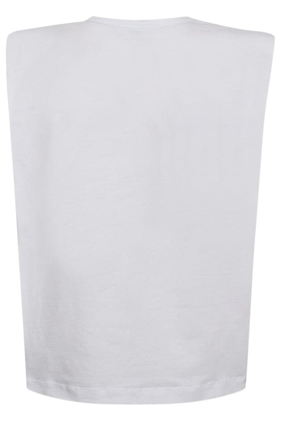 T-shirt blanc de Co'couture en coton biologique. Un top sans manches avec col rond et coupe droite, qui a un design simple et épuré.