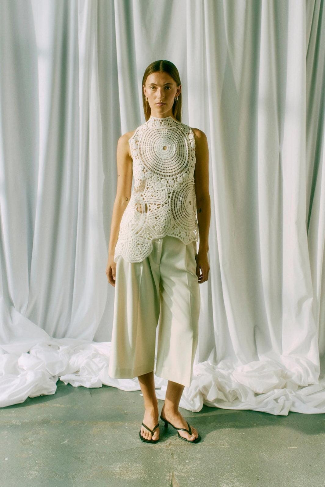 Haut sans manches de Copenhagen Muse dans une couleur claire. Le haut est fabriqué en 100 % coton et présente un motif crocheté circulaire détaillé.