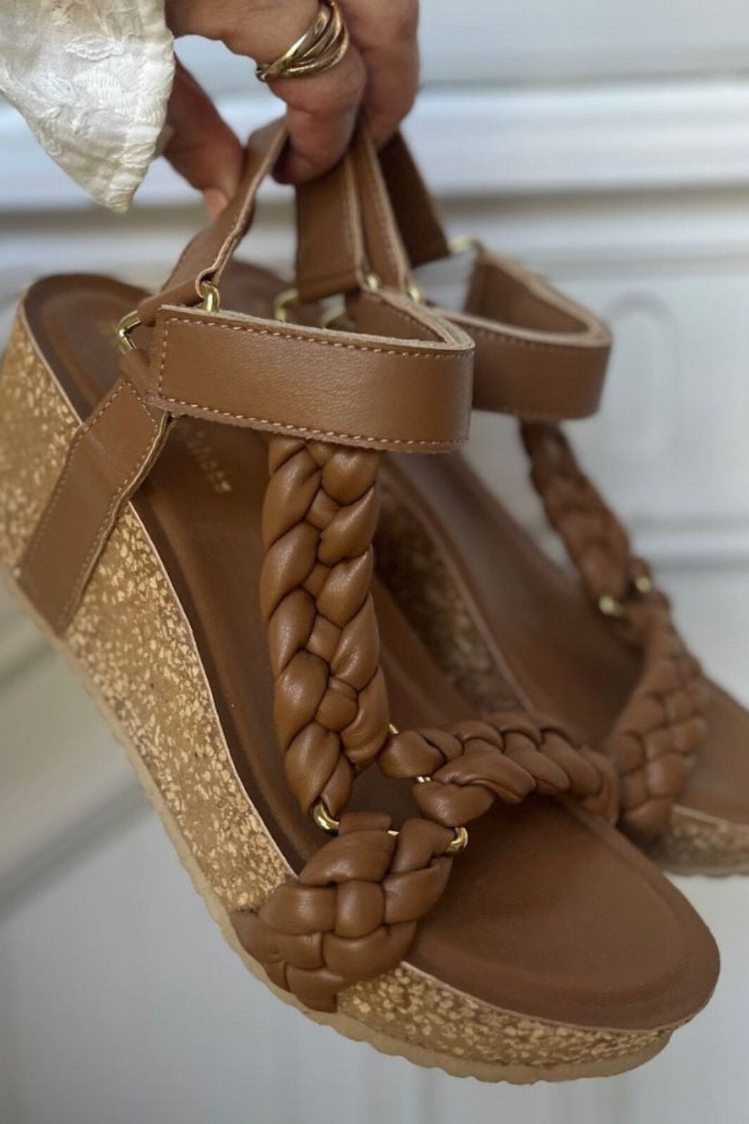Sandales Copenhagen Shoes en cuir dans une chaude teinte cognac. Les brides tressées apportent une touche artisanale.