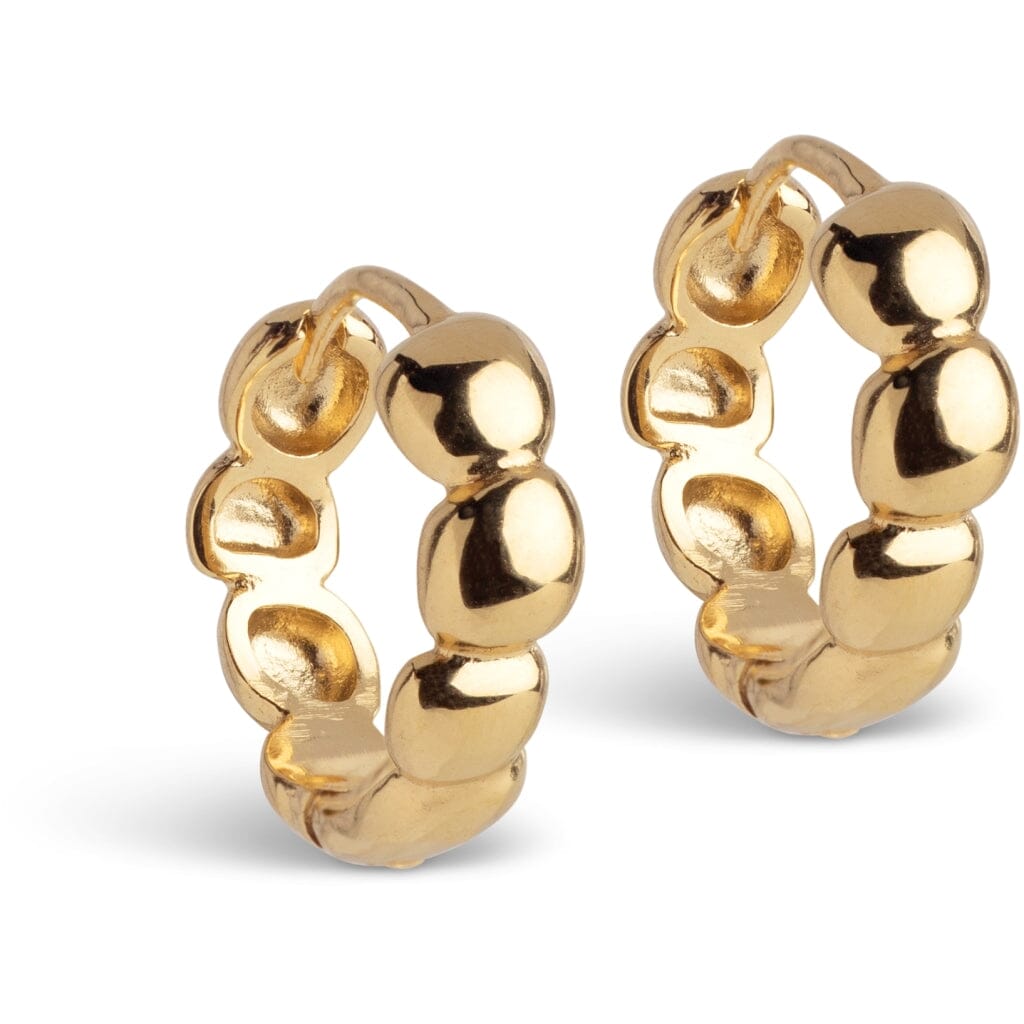 Créoles de Enamel Copenhagen, fabriquées en argent sterling recyclé plaqué or 18K. Le design présente des segments doux et arrondis avec une surface dorée polie.
