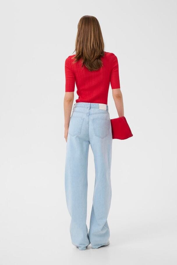 Polo rouge Gestuz à texture côtelée. Le top possède un col polo avec des boutons sur le devant et des manches courtes.