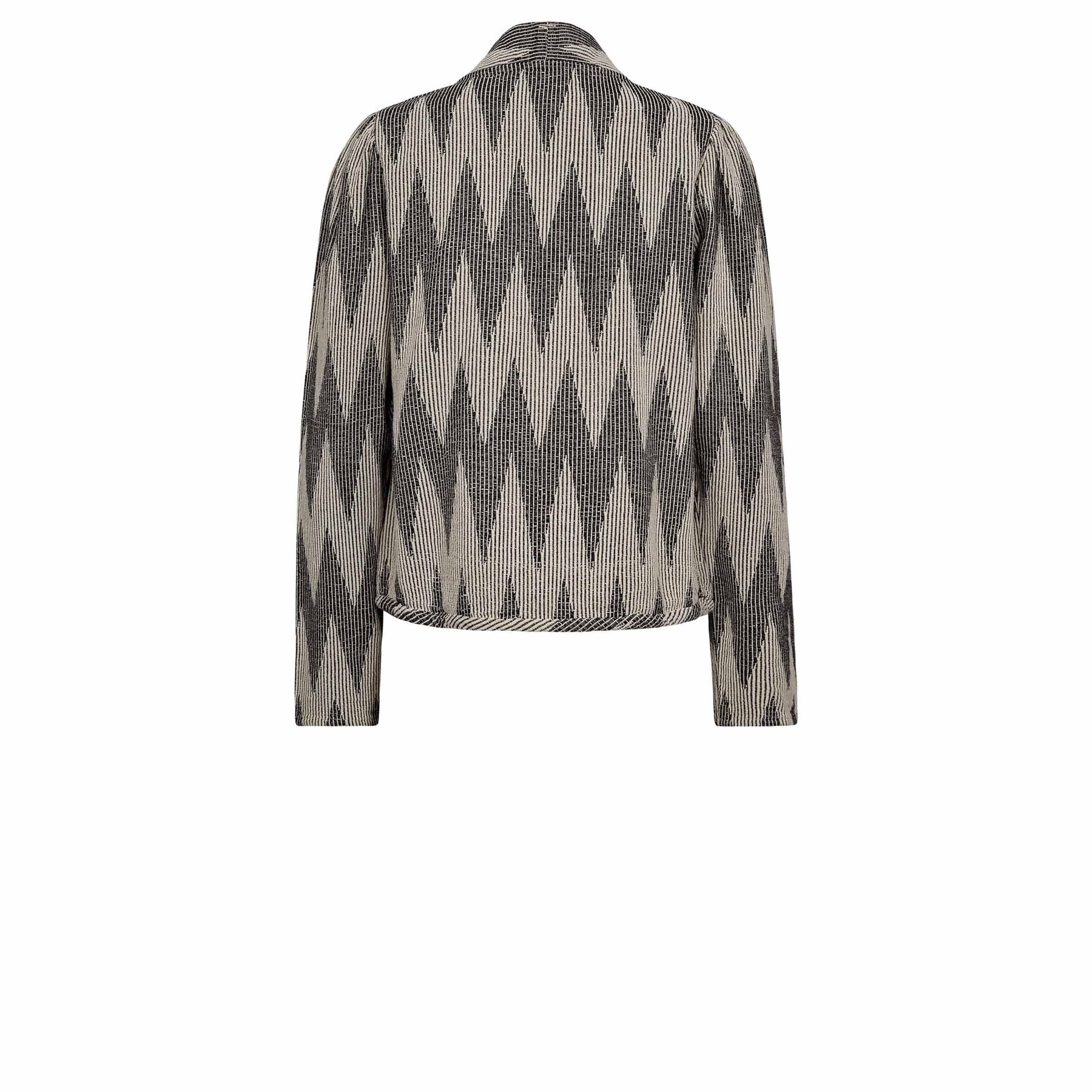 Une veste en jacquard grise de Gossia avec motif chevrons. La veste est fabriquée en 100 % coton et possède un col montant ainsi que des poches pratiques.
