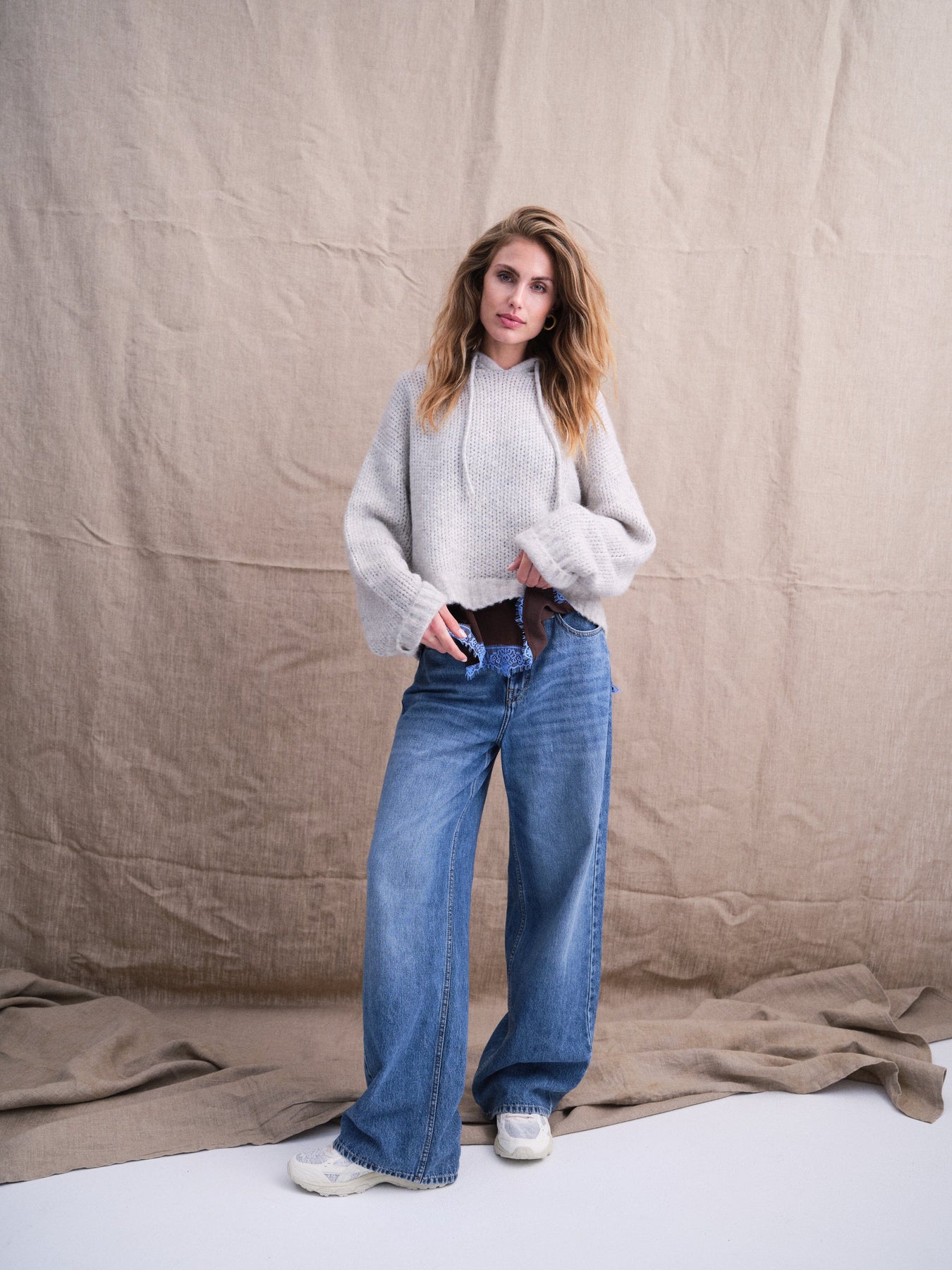 Pull à capuche de Gossia de couleur gris clair chiné avec texture tricotée et capuche à cordon de serrage.