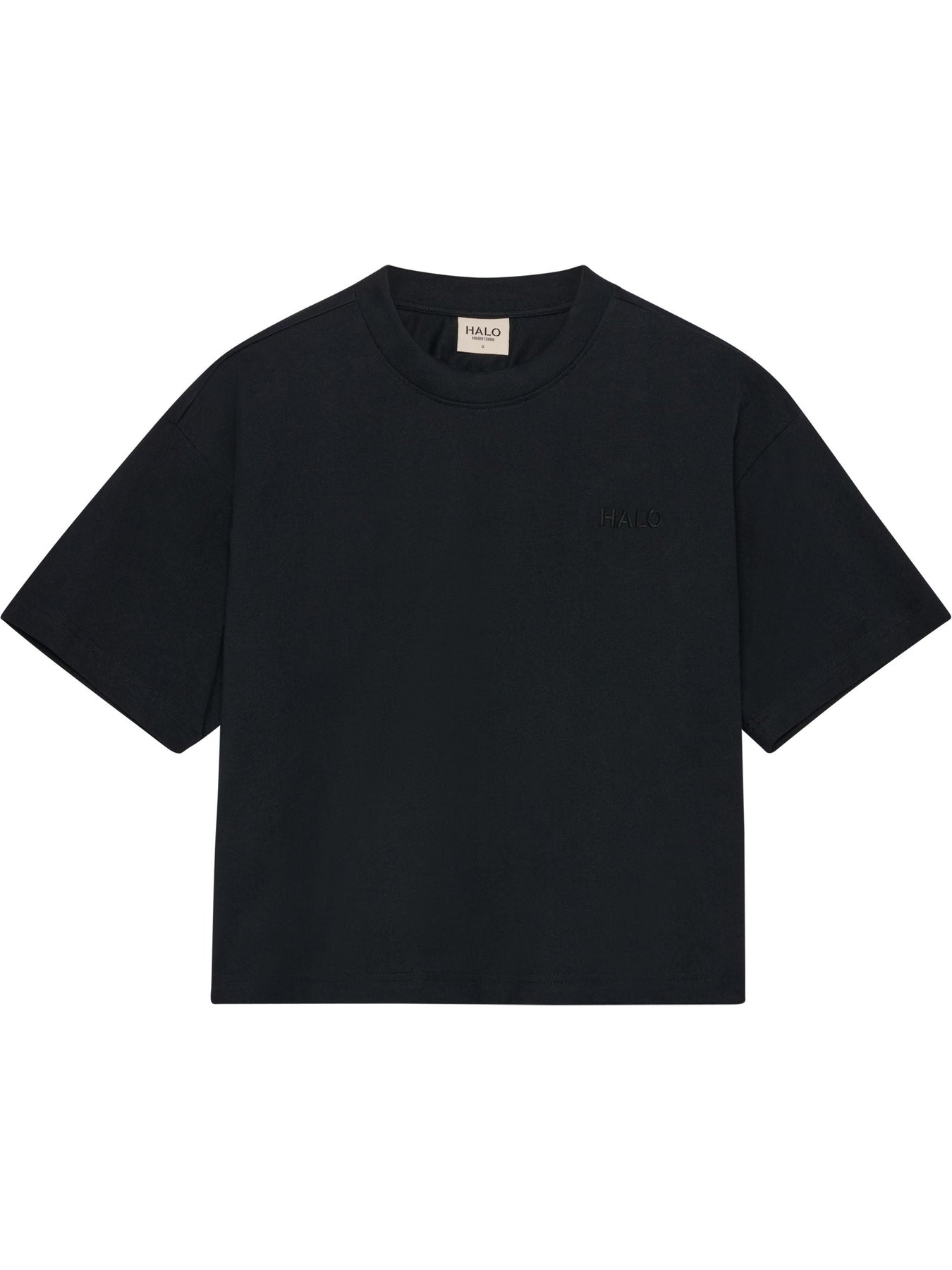 T-shirt noir Halo en coton biologique. Le T-shirt présente un logo brodé et une coupe ample.