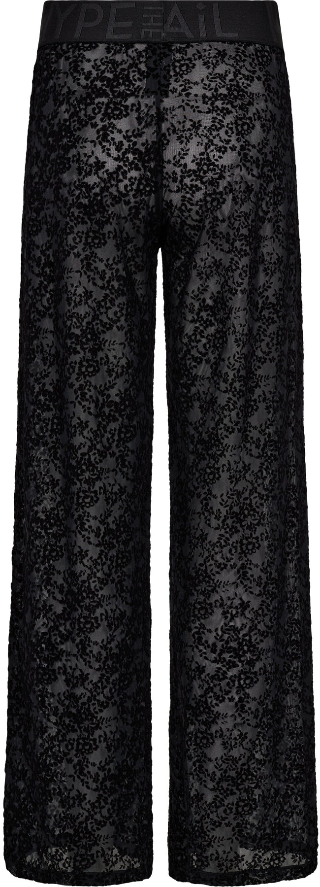 Pantalon en dentelle noir de Hype The Detail avec un motif floral sur l’ensemble du tissu. Le pantalon présente une jambe large et une taille élastique.
