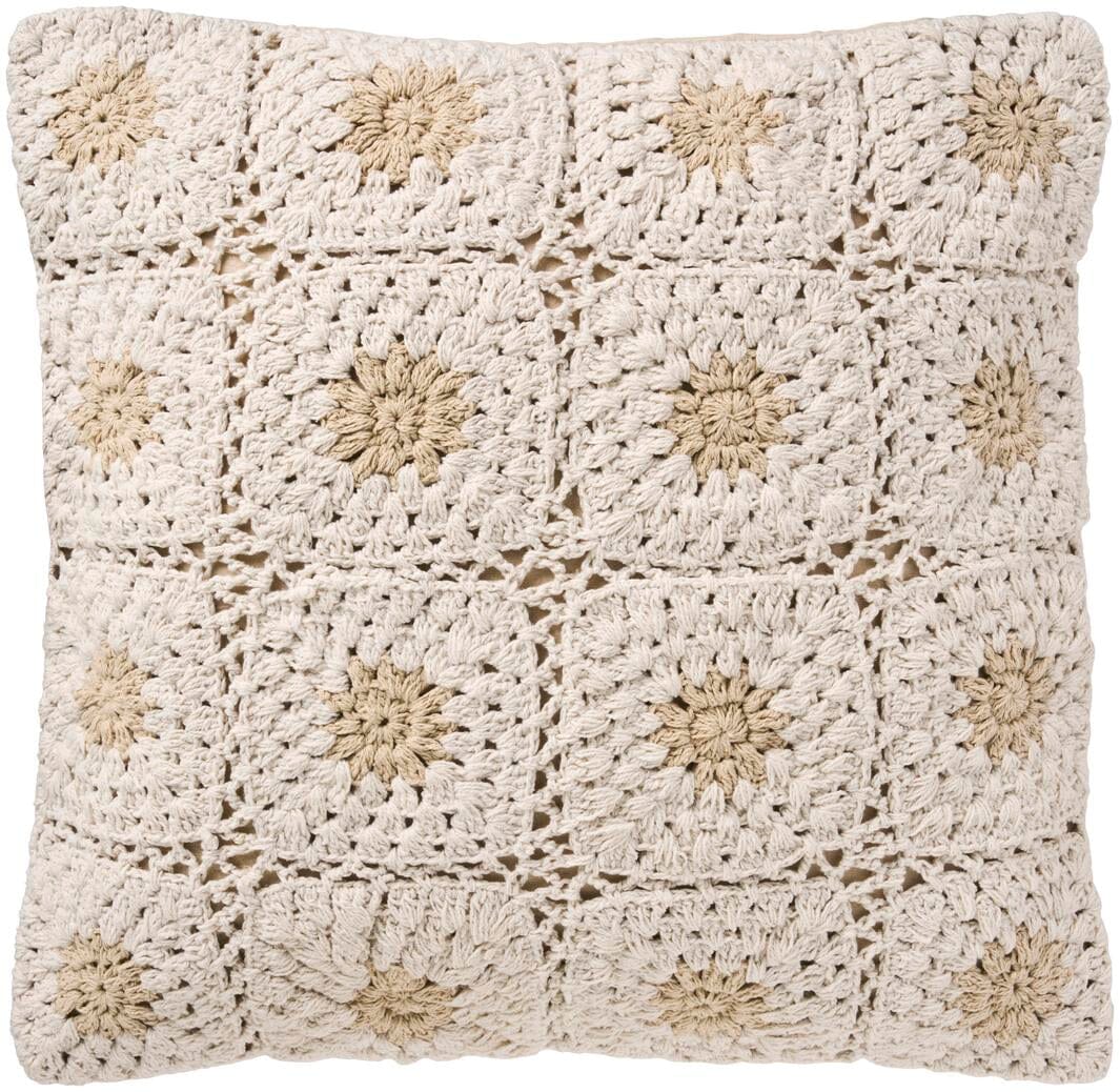 Ib Laursen Pudebetræk hæklet creme m/naturfarvede blomster, bagside i naturfarvet lærred Couleur: 100% bomuld