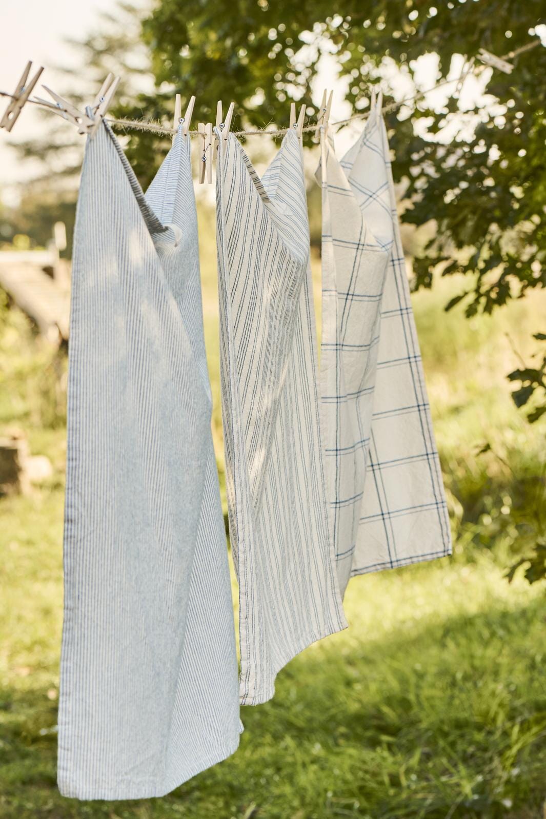 Ib Laursen Viskestykke Ebbe natur m/mørkeblåt ternet mønster Couleur: Bomuld