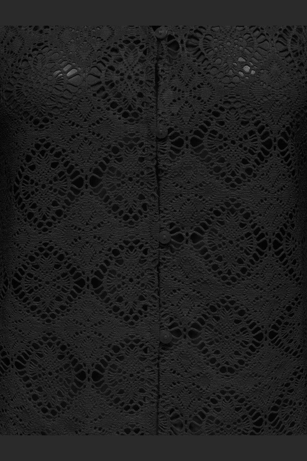 Top noir sans manches de JDY avec dentelle et fermeture à boutons. Le top a un col en V et est composé de 94 % de polyester et 6 % d’élasthanne.