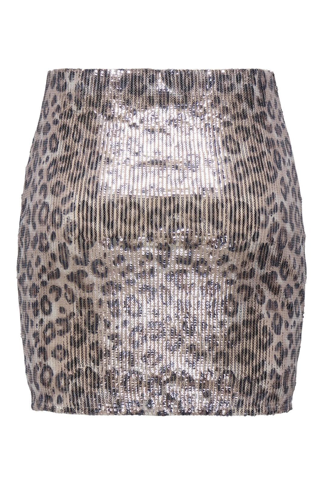 JDY Jdyleona Sequins Mini Skirt Couleur: 4840290 Brown Rice Brown Leo Sequins