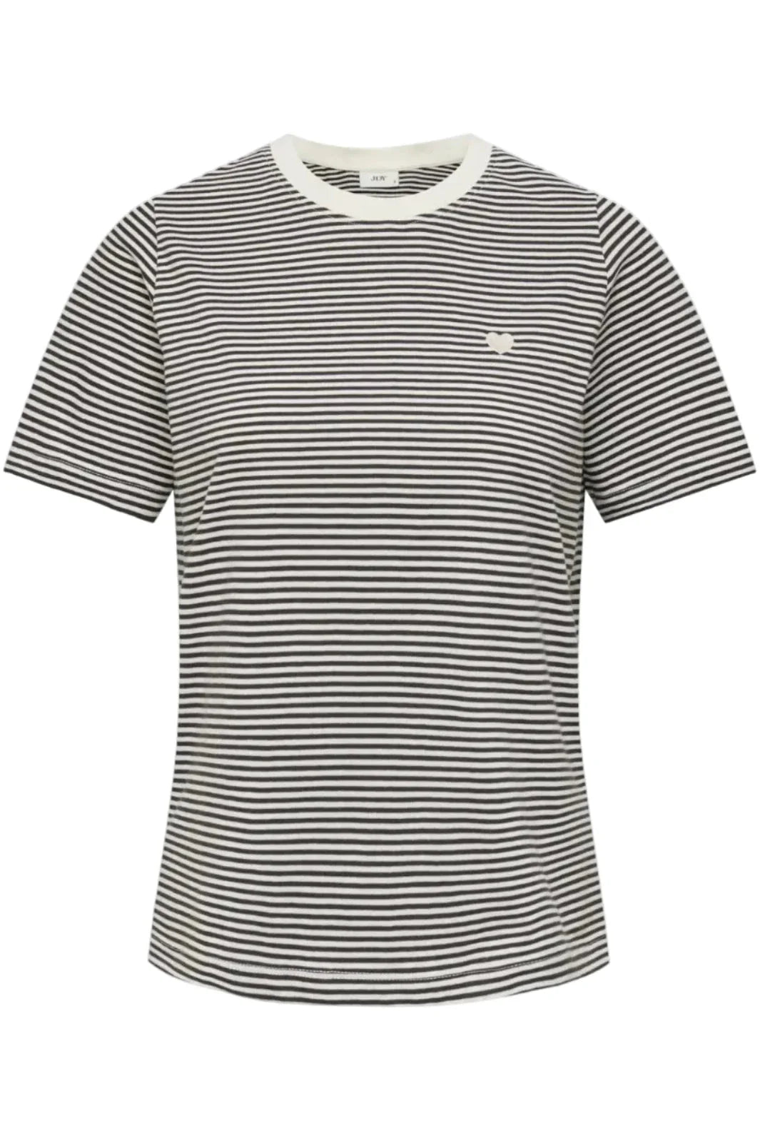 JDY Jdypisa S/S Print Top Couleur: 4984887 Cloud Dancer Chicory Coffee Stripes And Pink Dogwood Heart