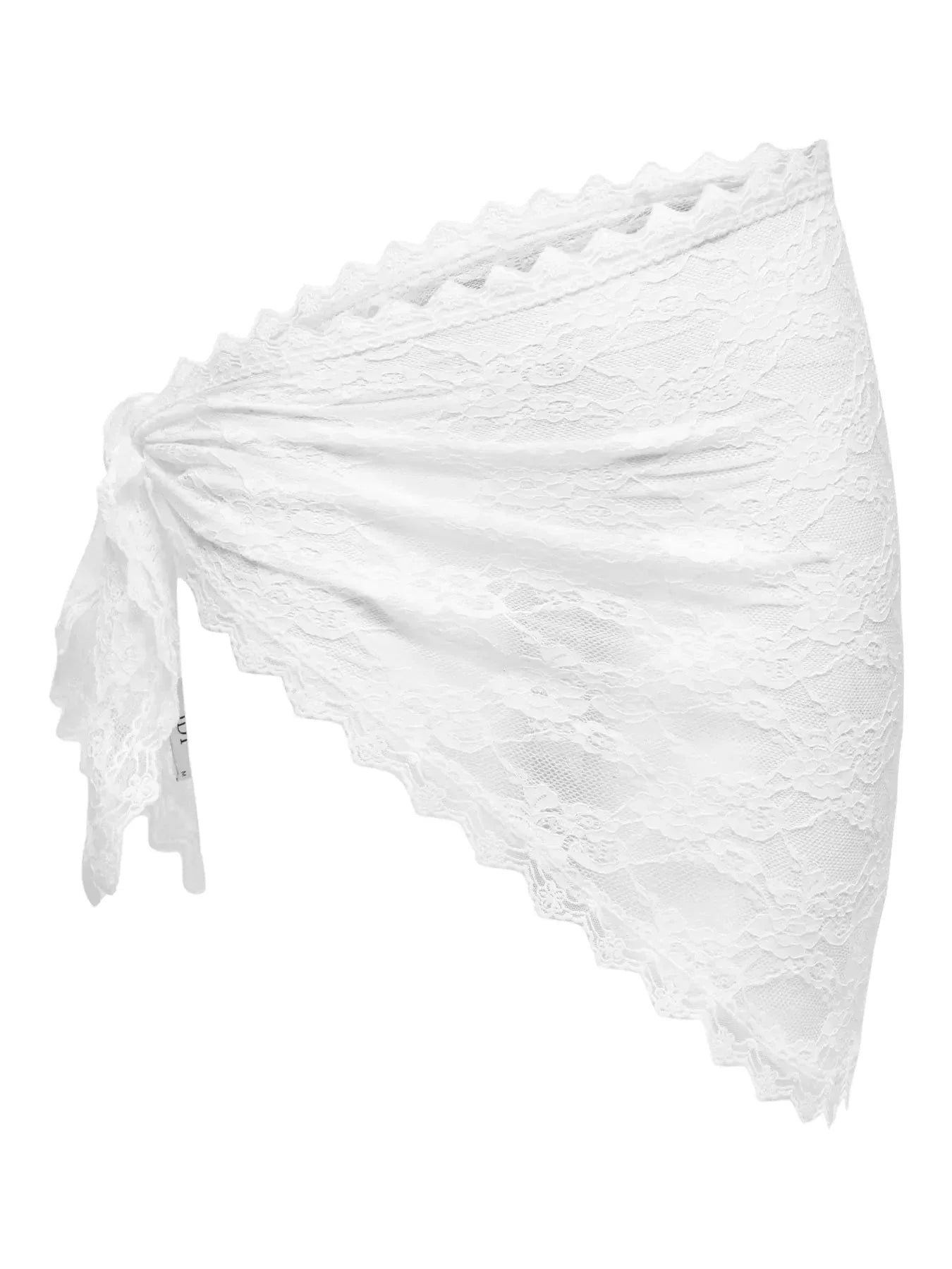 Un foulard en dentelle blanc de JDY en forme triangulaire avec des bords ondulés. La dentelle présente un motif floral, et la couleur est off-white.