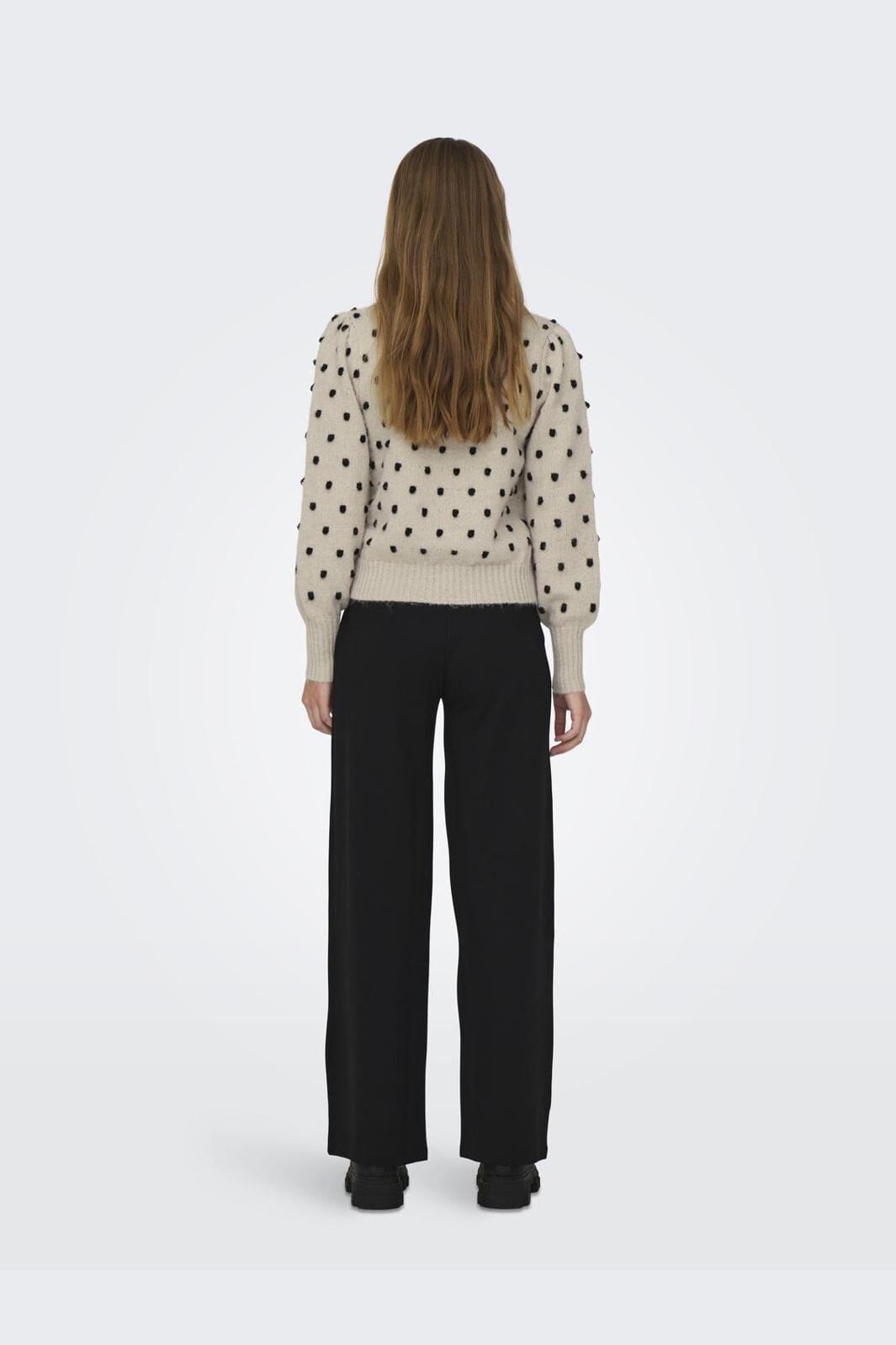 JDY JDYsigrid Life L/S On Puff Pull Knt Couleur: 4358569 Cement W. Black Dots