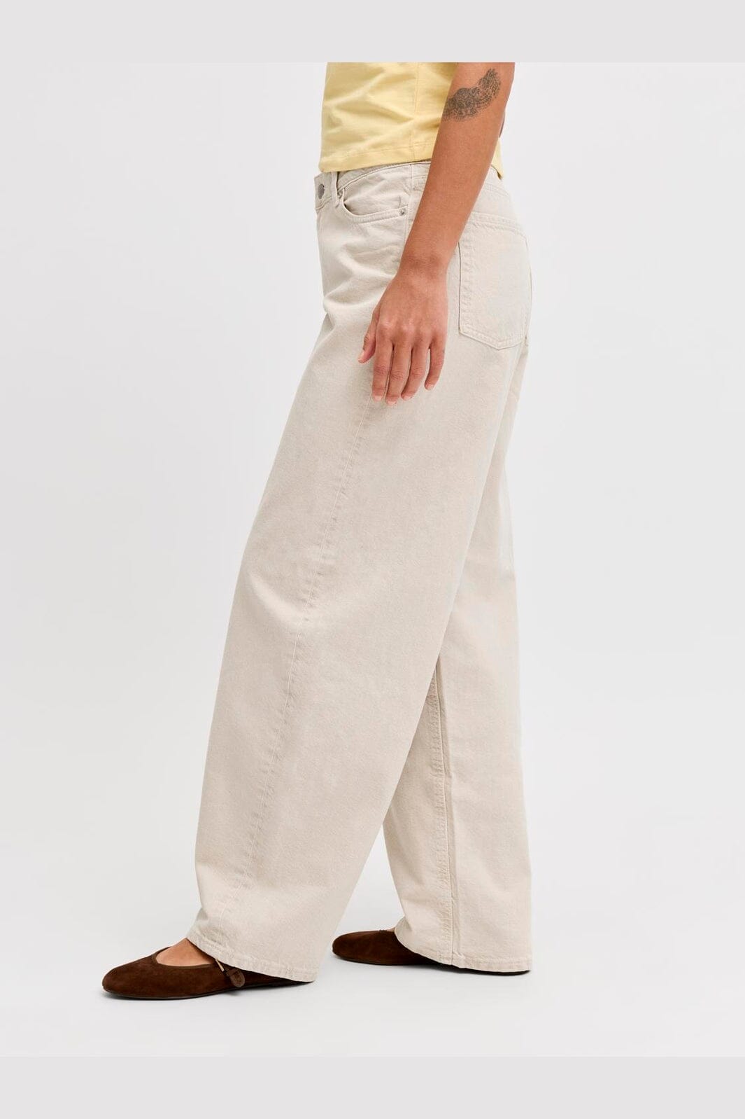 Jean clair JJXX avec coupe barrel-fit et couleur beige clair. Le jean présente une coupe décontractée avec jambes amples et est confectionné en sergé de denim résistant.
