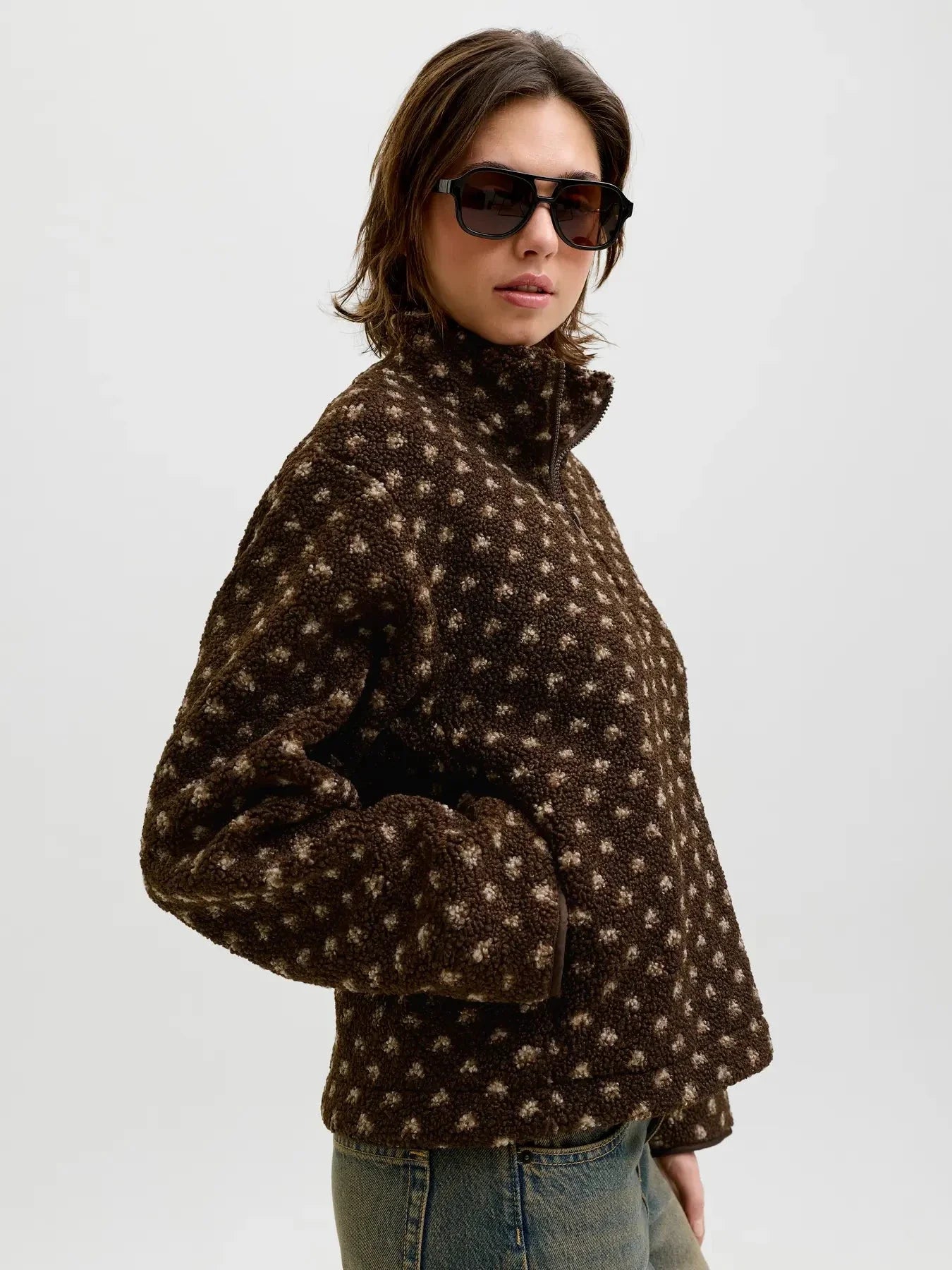 Jjxx Jxvera Half Zip Teddy Jacket Couleur: 5034468 Bracken Petit Dot Off White