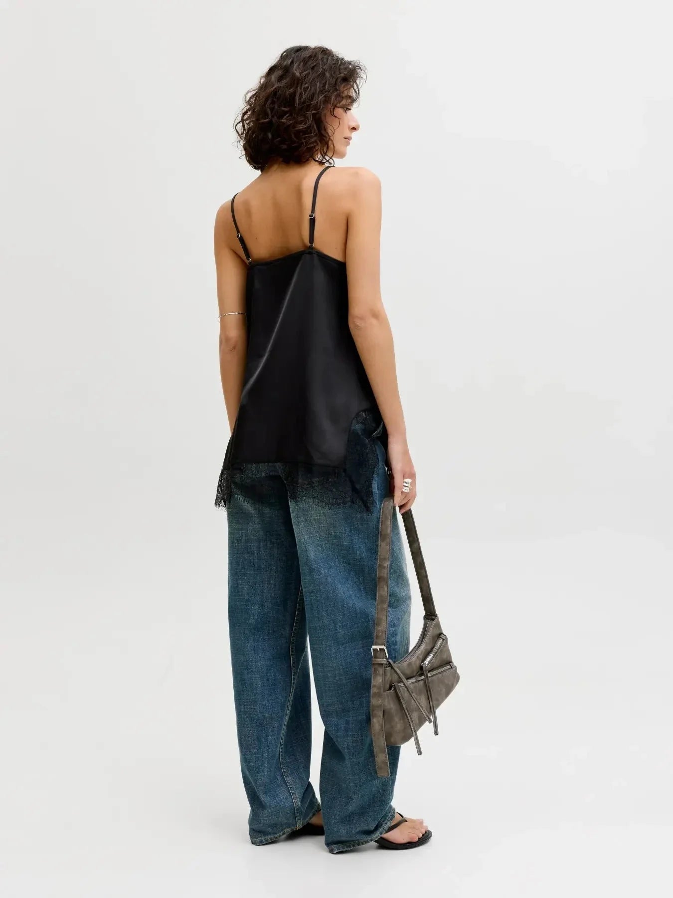 Jjxx Jxvima Singlet Satin Lace Long Top Couleur: 5076719 Black
