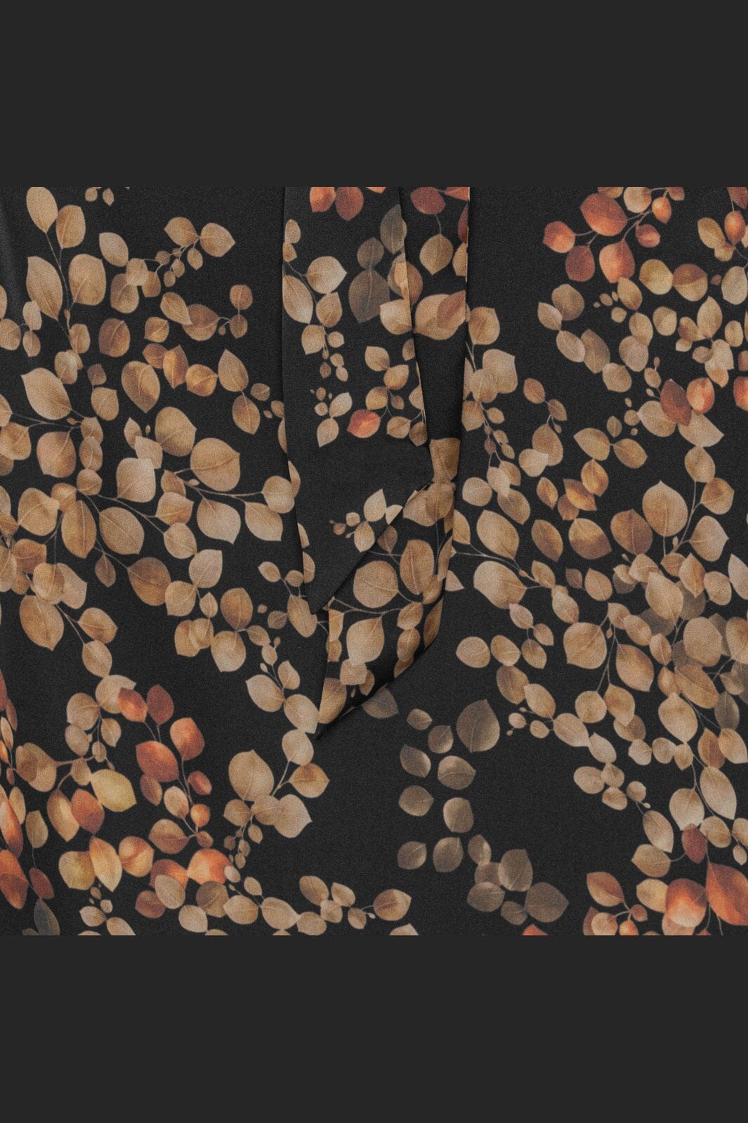 Jupe longue de Karmamia avec imprimé floral dans des nuances de brun et d'orange sur fond noir. Elle a un ourlet volanté en bas et un lien à la taille.