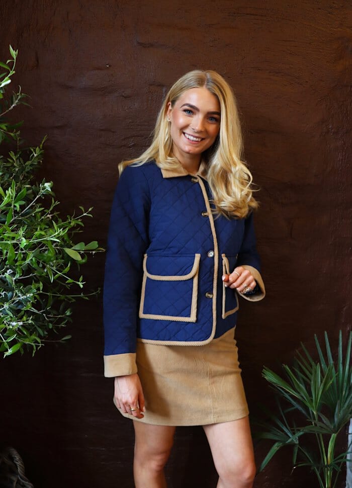 Jupe en velours côtelé couleur sable de Liberte. Une jupe courte avec une coupe ajustée et une texture côtelée dans le matériau en velours côtelé.