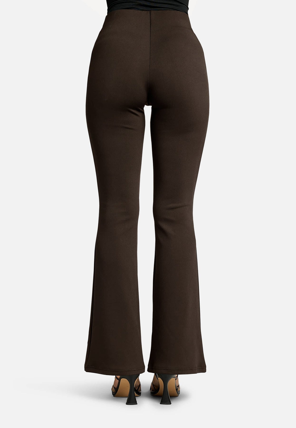 Pantalon évasé marron de la marque Liberte, confectionné dans un mélange de viscose, polyester et spandex. Le pantalon présente une couleur brun chaud et une coupe évasée.