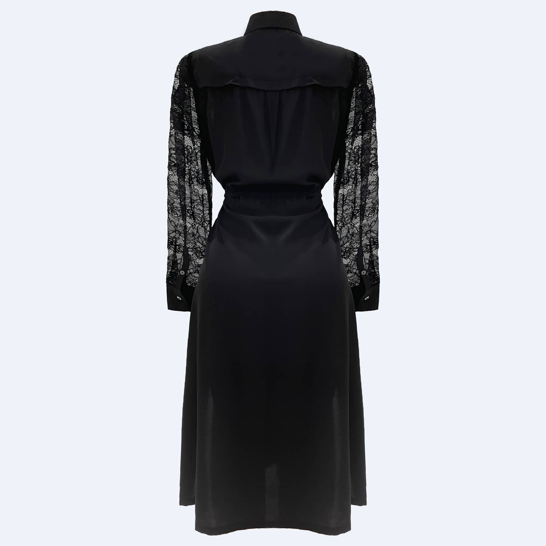Longue chemise noire de Liberte avec manches en dentelle et ceinture à nouer à la taille. La chemise convient aussi bien au quotidien qu’aux occasions festives.