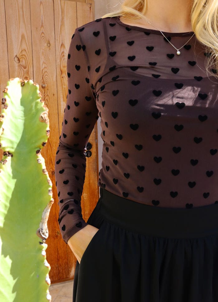 Liberte Mesh-Ls-Tshirt 22065 Couleur: Dark Brown Black Flock Heart