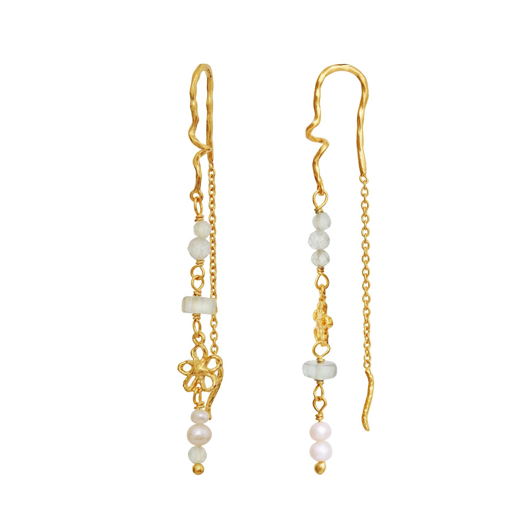 Boucles d’oreilles de Maanesten, fabriquées en argent sterling recyclé plaqué or 18 carats. Le design est inspiré par la douce pluie d’été et les souvenirs du solstice d’été.