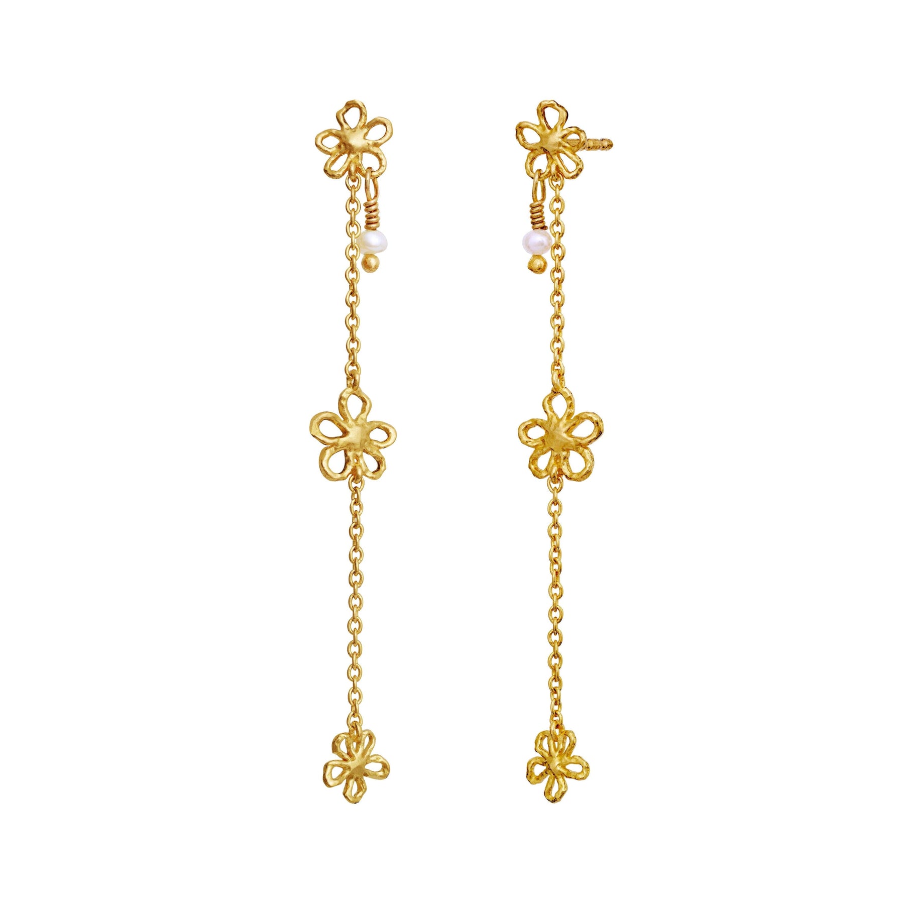 Longues boucles d’oreilles Maanesten avec motifs floraux et petites perles. Le design est inspiré des étés d’enfance et présente une expression nostalgique.