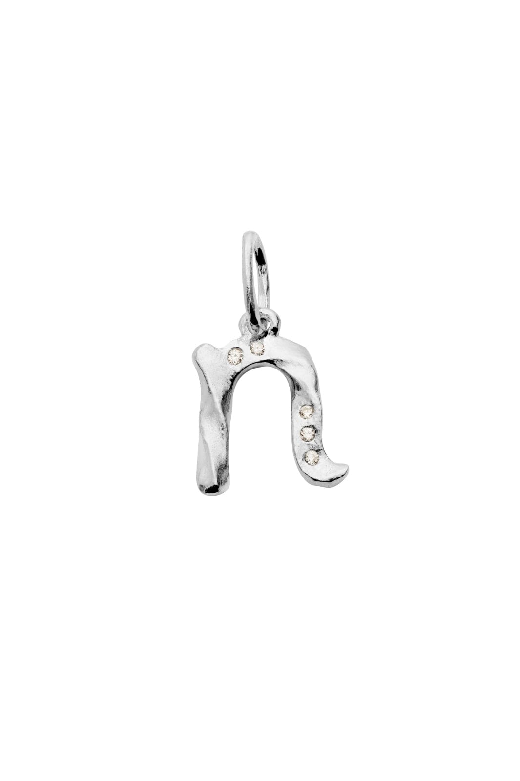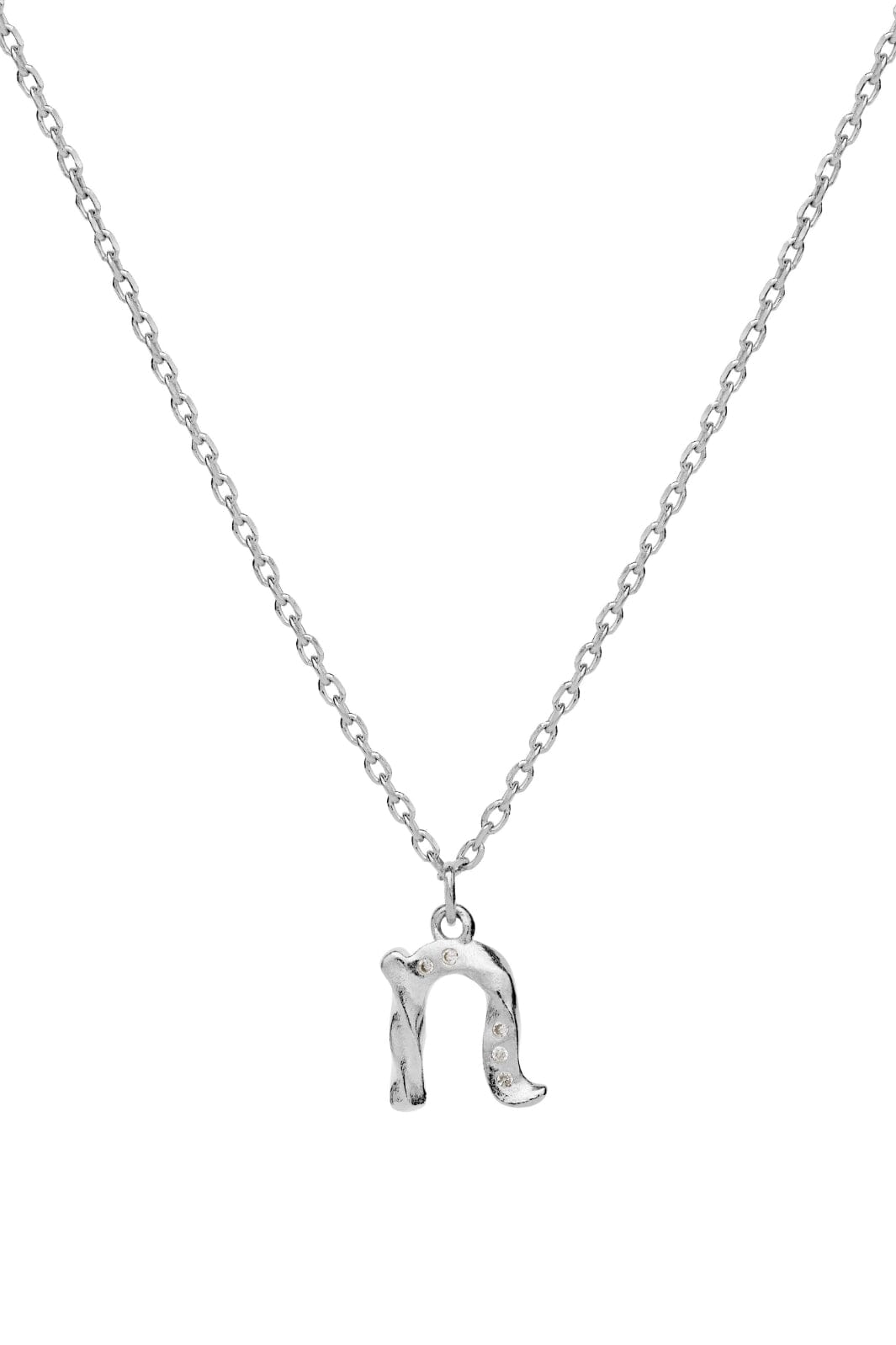 Collier en argent de Maanesten avec un pendentif en forme de lettre en argent sterling recyclé. Le pendentif a la forme d'un 'n' et est orné de petites pierres qui créent de jolis détails dans le design.