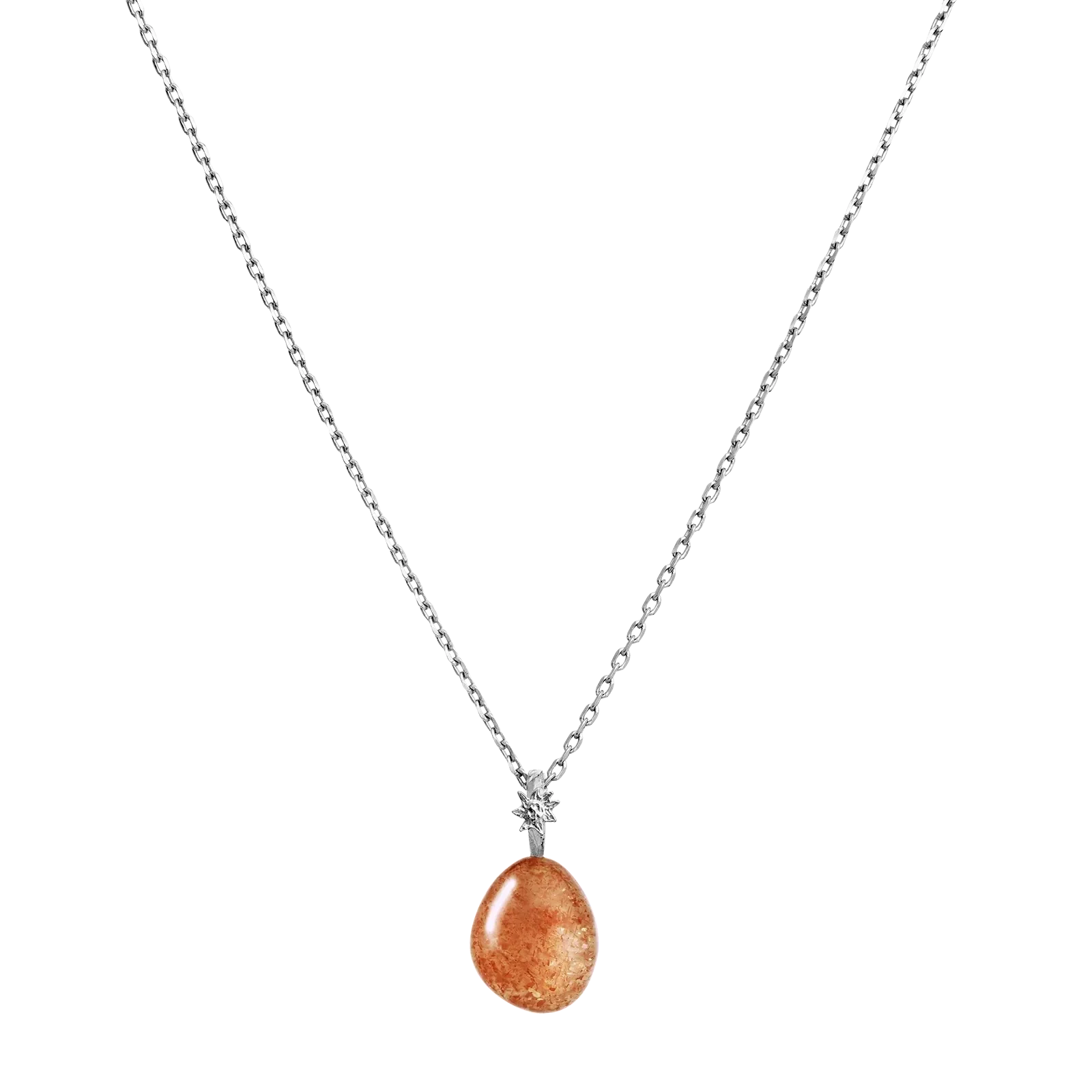 Pendentif de Maanesten avec une pierre orange en forme de goutte. Le pendentif possède un petit motif étoile sur le dessus qui relie la pierre à la chaîne.