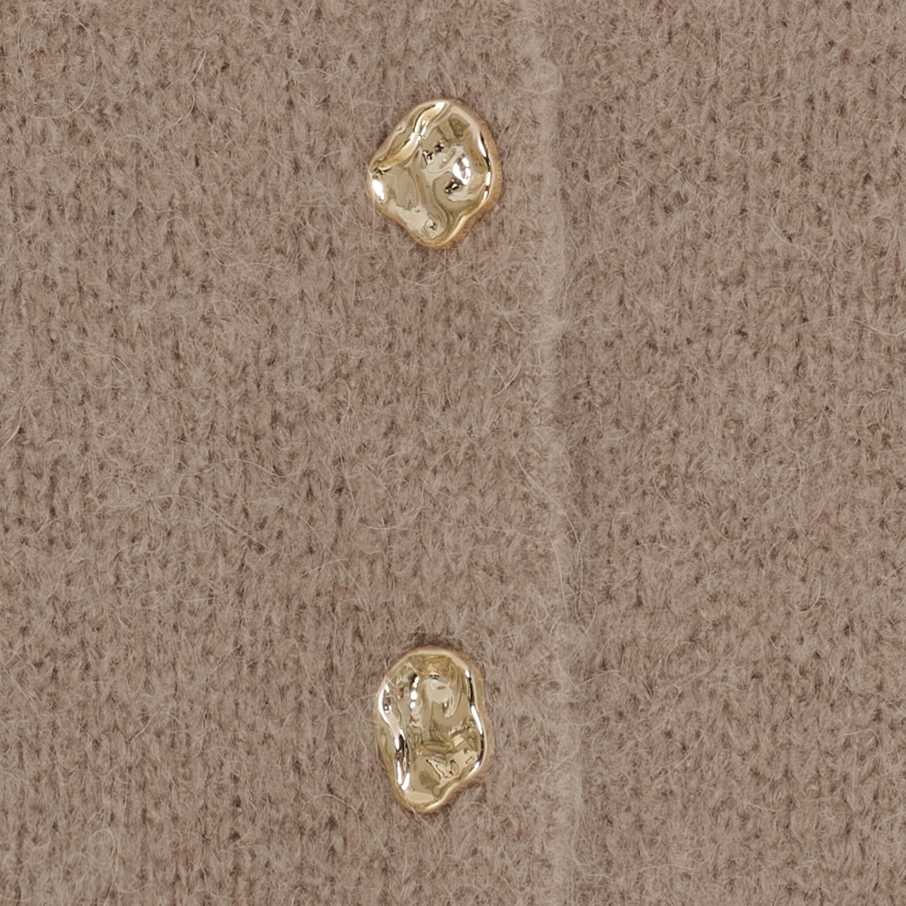 Gilet sans manches de Marta Du Chateau dans une couleur fango brun-gris neutre. Le gilet a un décolleté en V et une fermeture à boutons à l'avant.