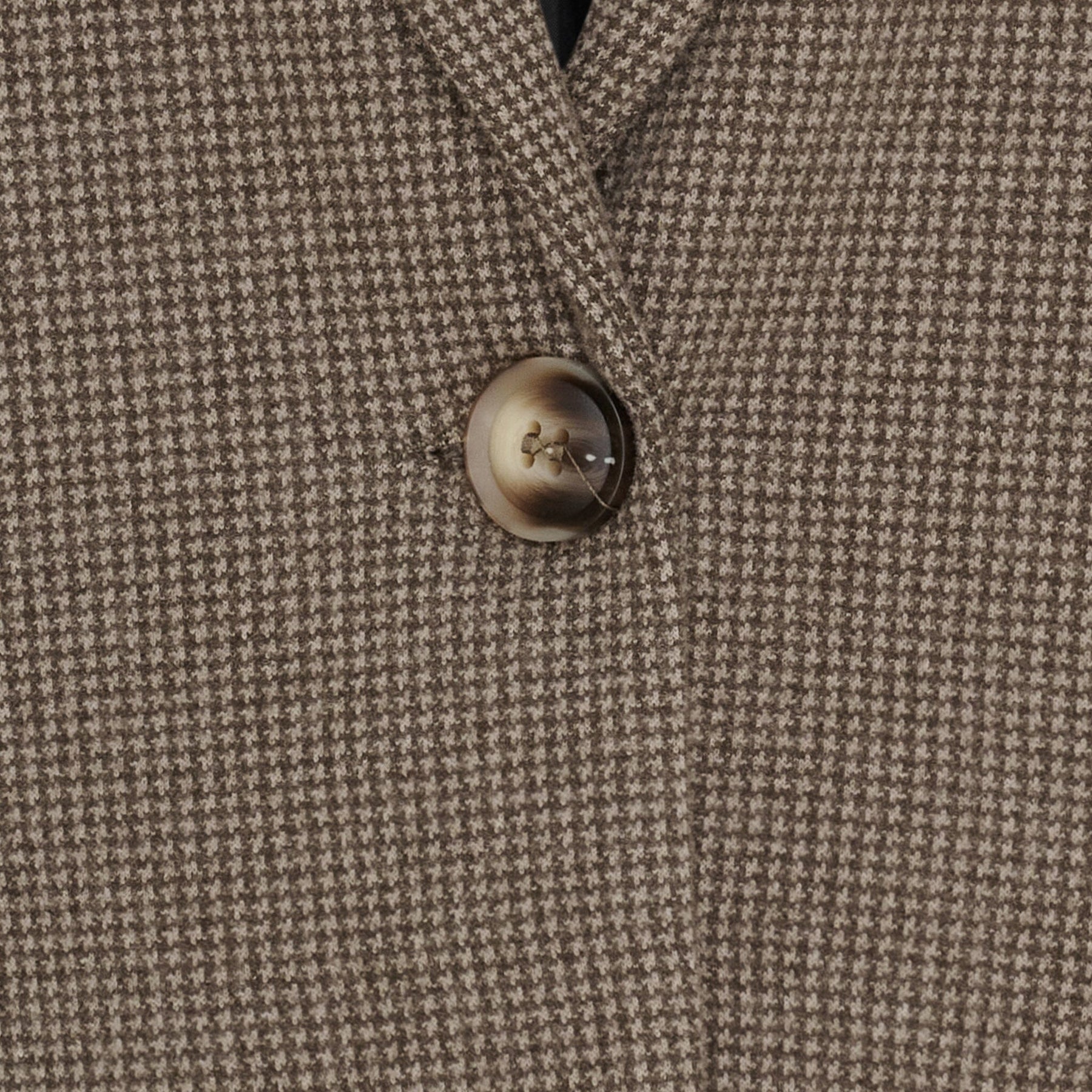 Blazer à carreaux de Marta Du Chateau dans des nuances de brun et de beige. Le motif à carreaux donne au blazer une expression classique.