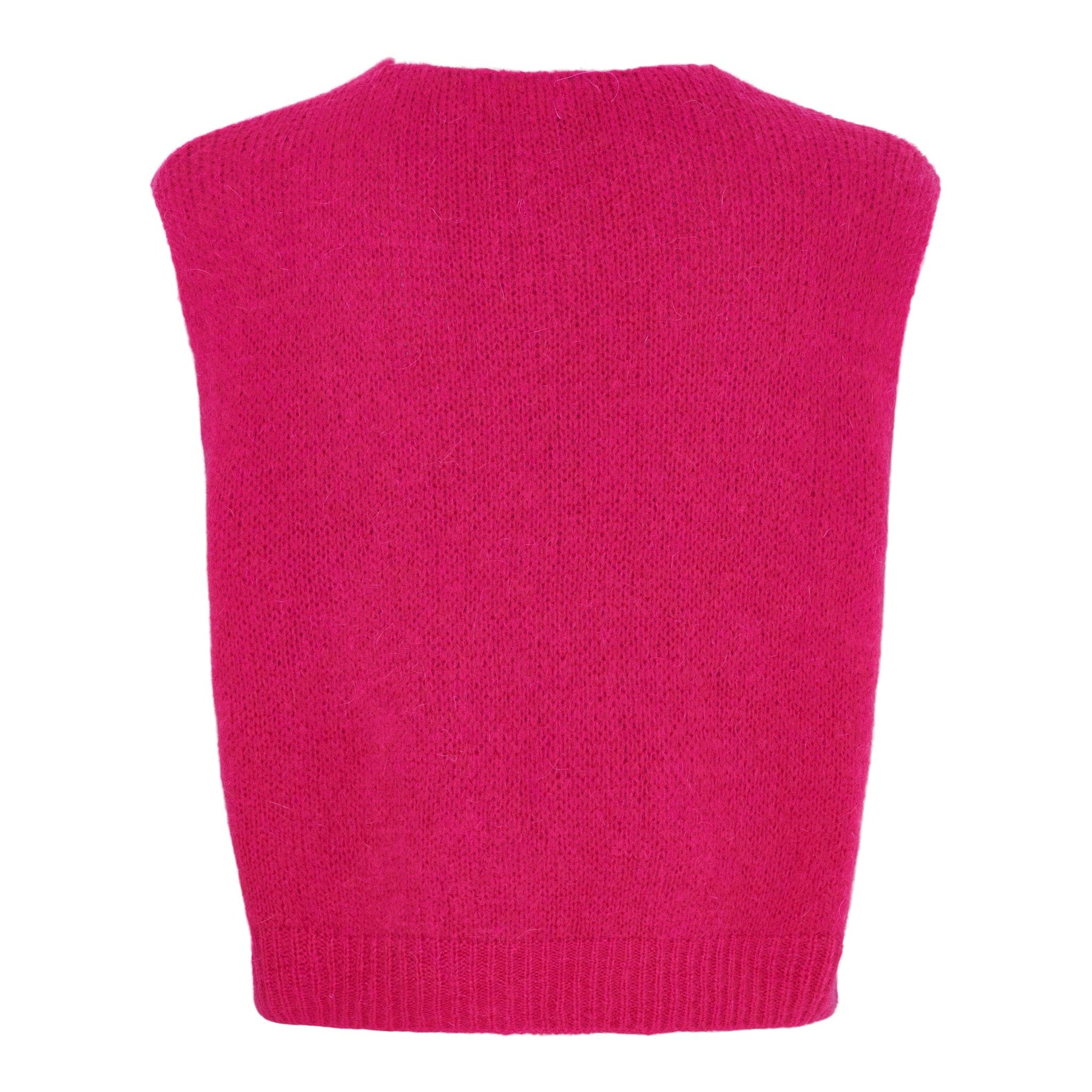 Gilet rose profond de Marta Du Chateau avec décolleté en V et bord côtelé au bas. Il est tricoté dans un mélange doux de mohair, laine, polyamide et acrylique.