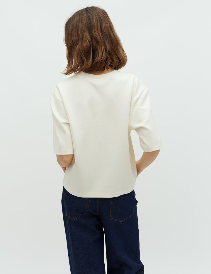 Haut à manches longues de MbyM dans une nuance crème. Le haut présente un design uni et une encolure ronde.